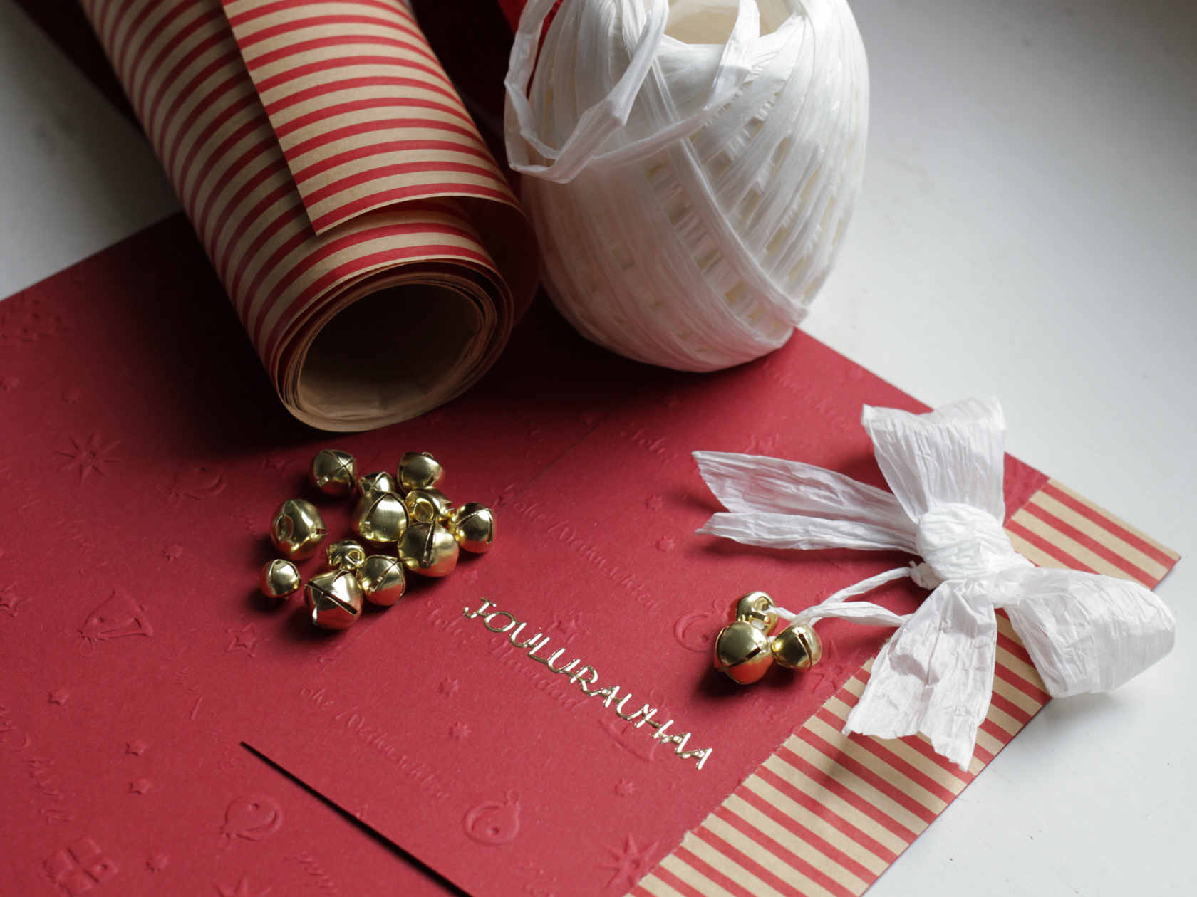 Myös viimevuotiset lahjapaperit ja kortit, nauhat ja kuusenkoristeet käyvät mainiosti askartelumateriaalista.