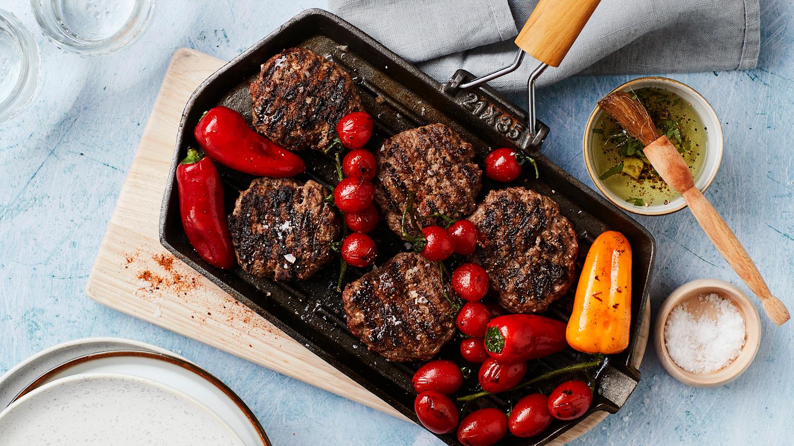 Mikäs sen hauskempaa kuin grillikauden avajaiset burgeribileillä! Perinteiset jauhelihapihvit grillissä on jokavuotinen suosikki ja kiva valmistaa isommallekin porukalle.