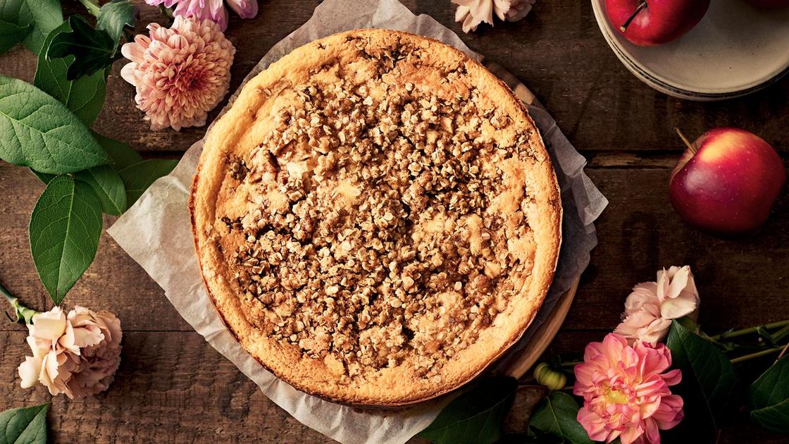 The apple cheesecake combines the flavours of apple pie and cheesecake. With velvety smooth filling, cinnamon-flavoured apples and crispy oat crumbs, this delicious cake is sure to delight everyone.