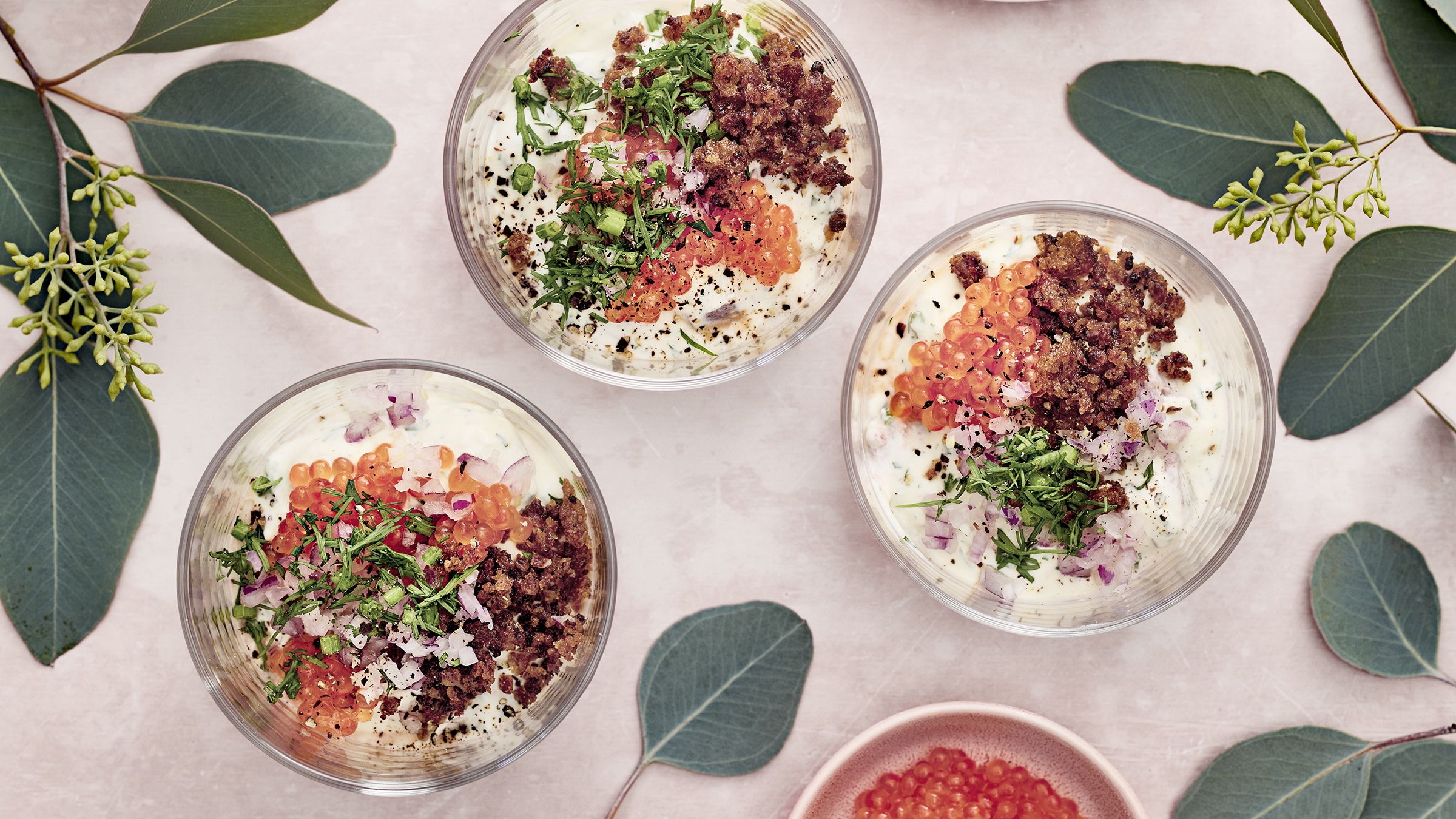 Denna sillmousse läggs upp i glas och får en festlig topping med rom. Brynt smör och knapriga brödsmulor fulländar smakupplevelsen.
