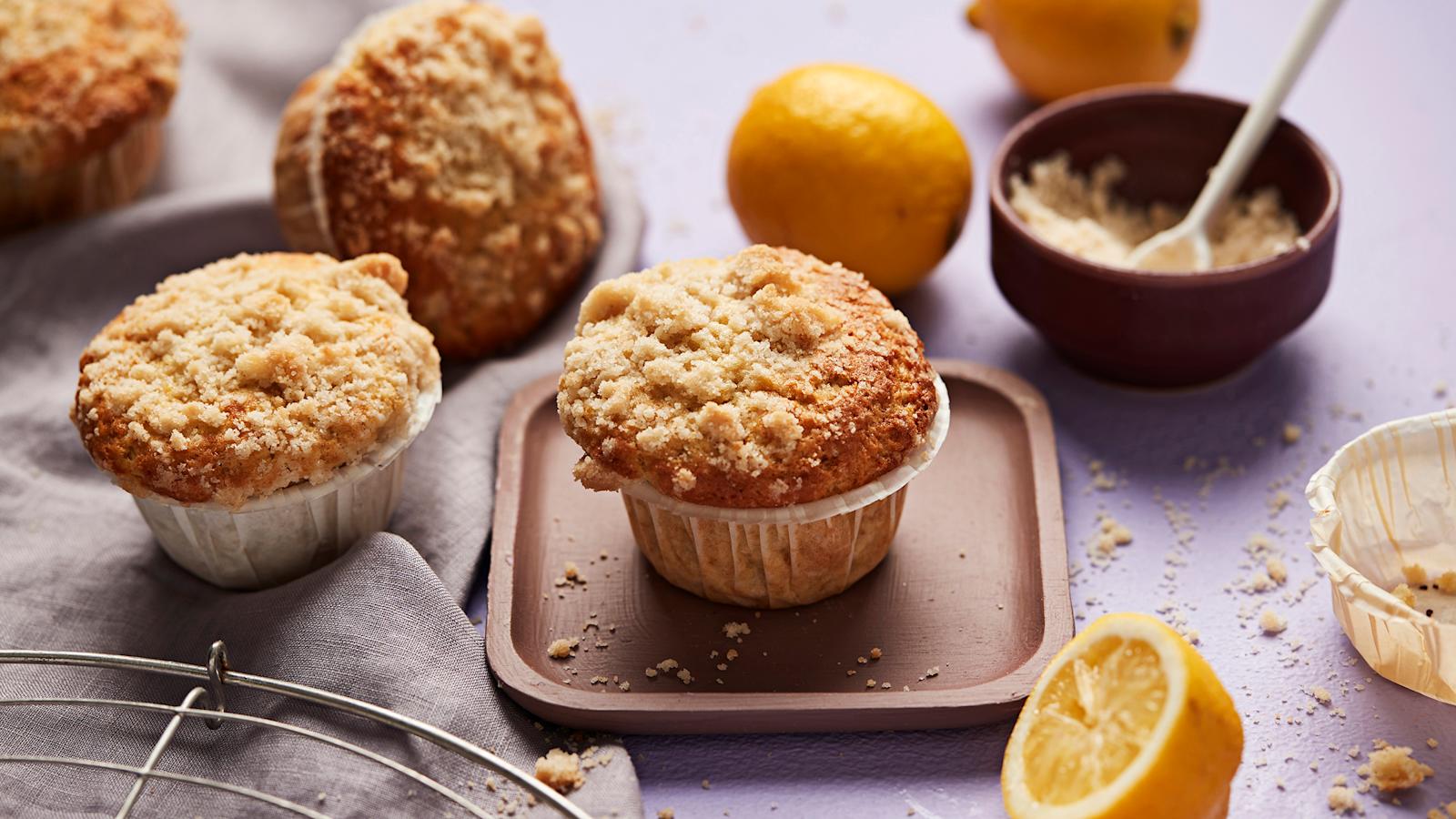Perheen pienemmillekin leipojille sopiva sitruunaleivonnainen tehdään muffinssimuotoon. Taikinaa ei vatkata eikä vaahdoteta, mikä helpottaa hommaa. Malta kuitenkin sekoittaa erikseen muruseos, joka ripotellaan muffinssien pintaan tuomaan kivaa rapeutta. Muffinssitaikina maustetaan sitruunanmehulla ja -kuoriraasteella. Niiden makupariksi tulee vaniljarahkaa.