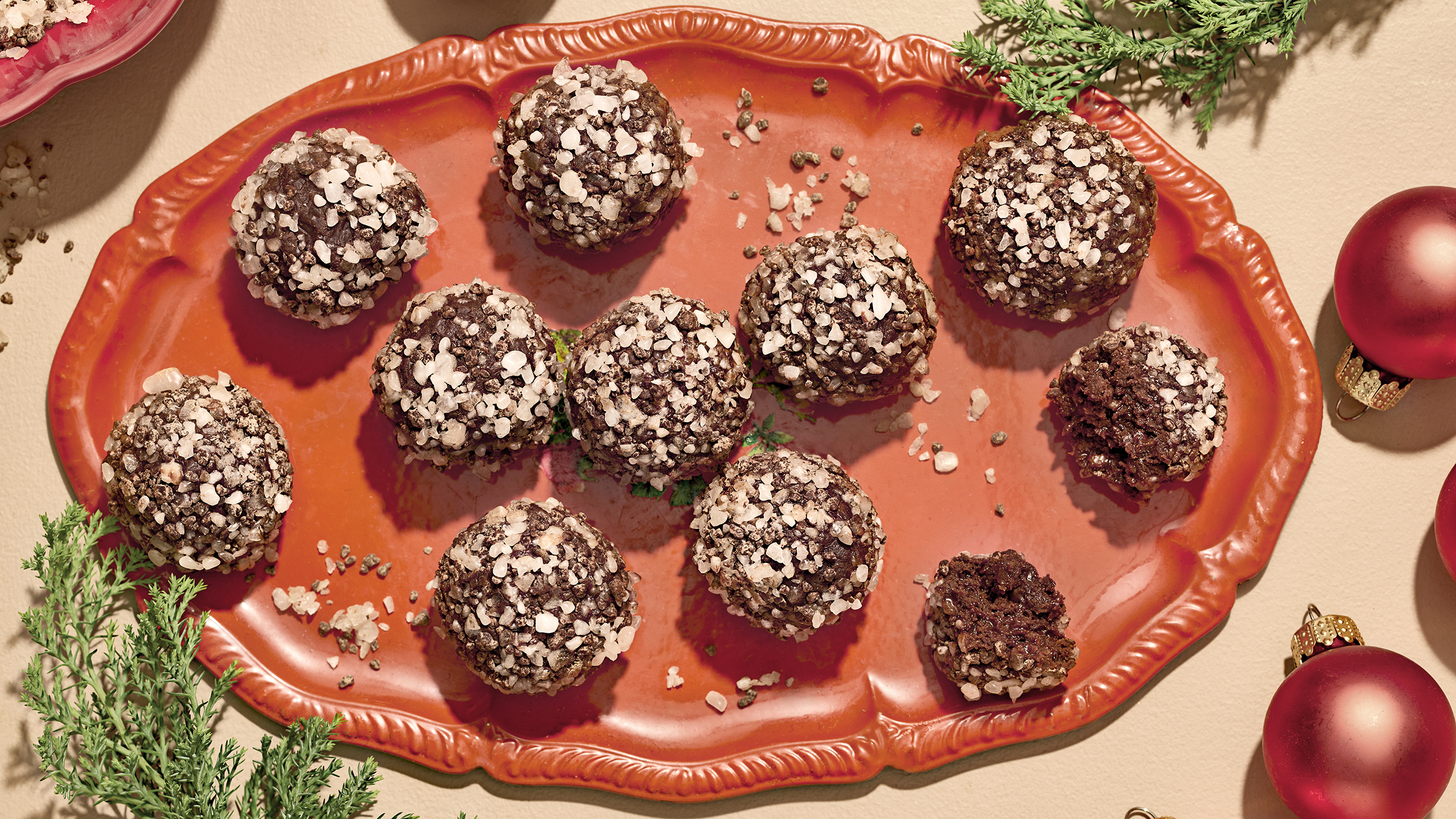 Hemgjorda tryfflar är utsökta! Dessa chokladtryfflar får mintsmak och knaprig konsistens av Marianne-karamellkross.