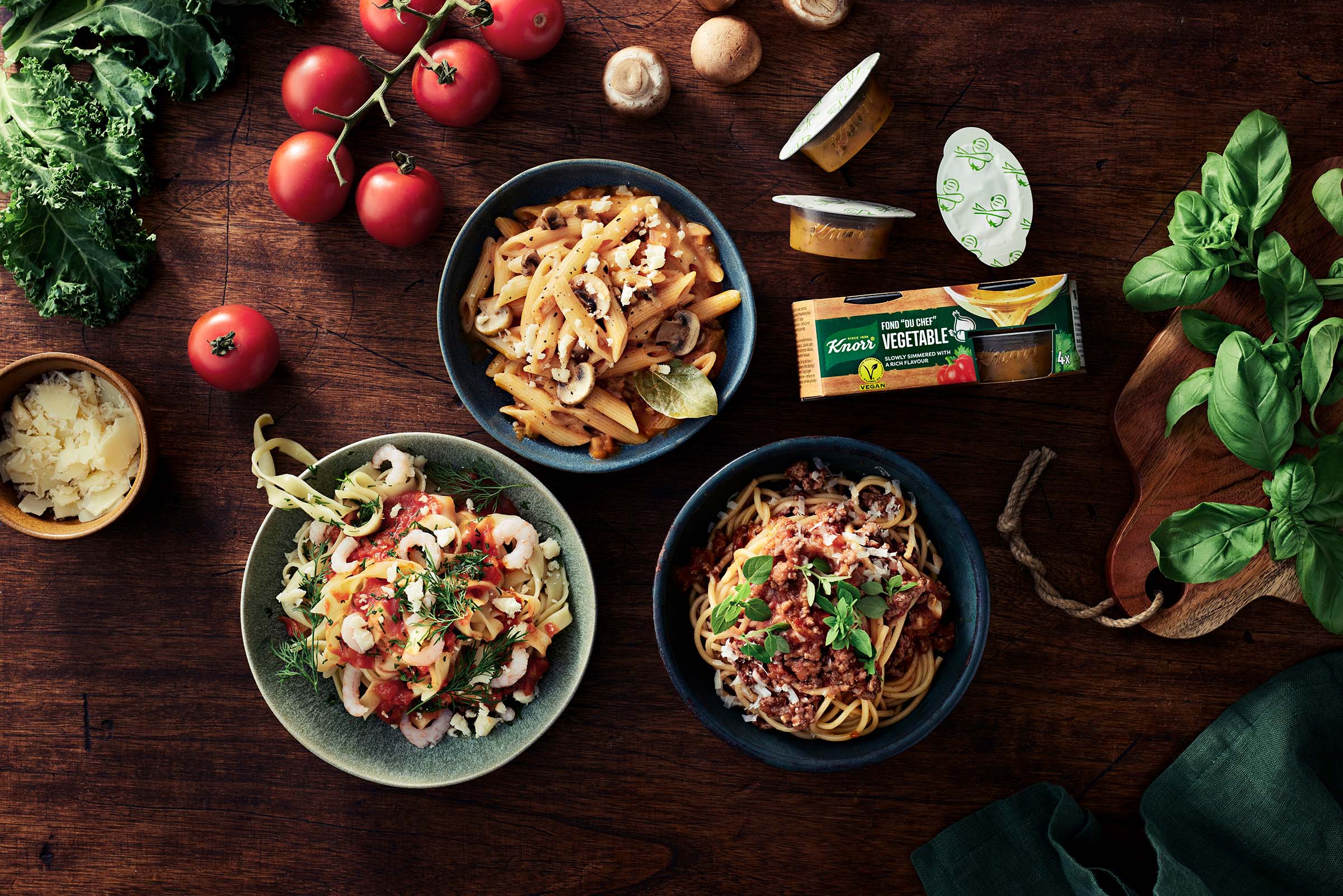 Täyteläinen jauhelihabolognese ei vaadi onnistuakseen kuin muutaman aineksen ja hetken aikaa. Tomaattinen kastike saa makunsa basilikasta, valkosipulista ja umamisesta lihafondista – muita mausteita ei tarvita! Kastike hautuu ihanan tuhdiksi samalla, kun keität spagetin. Raastettu parmesaani ja tuore basilika antavat perinteiselle pastaruoalle viimeisen silauksen.