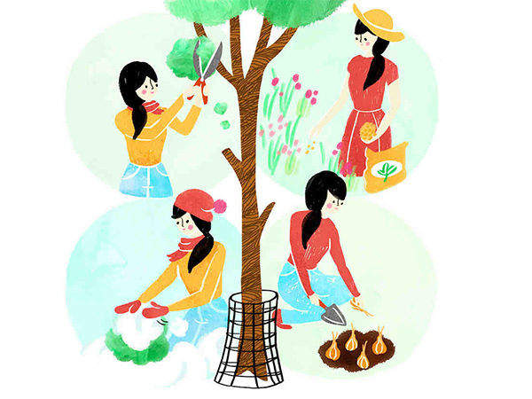 Keväällä leikataan puita ja pensaita. Kesällä kastellaan ja lannoitetaan, syksyllä suojataan kasveja. Katso lista, mistä puutarhatöistä pitää huolehtia minäkin vuodenaikana.