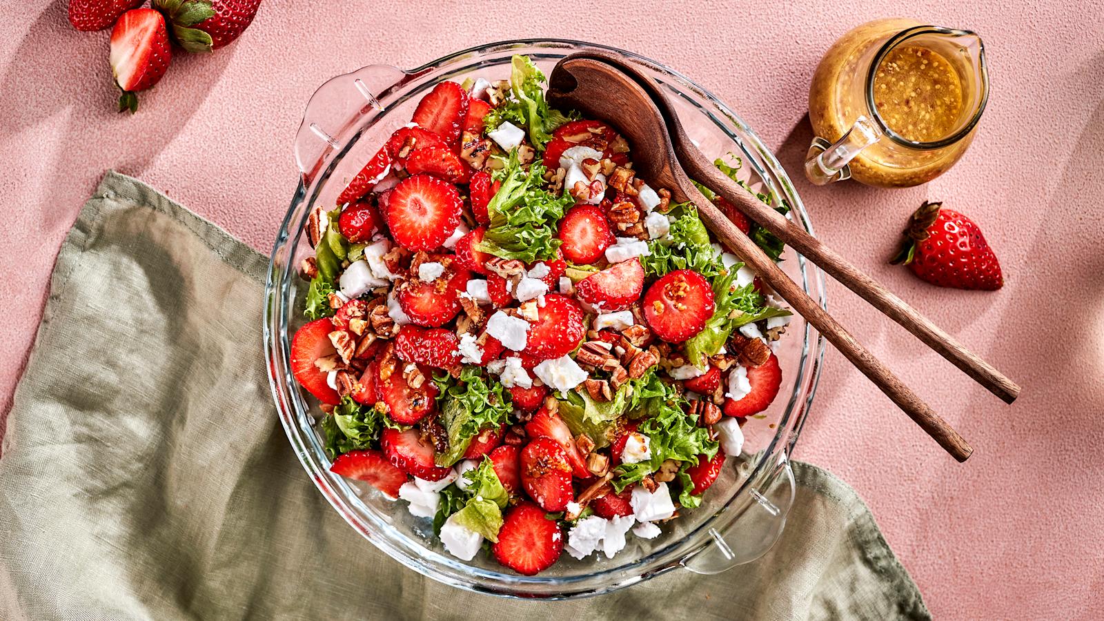 Kreikkalaisessa mansikkasalaatissa maistuvat tuoreet mansikat ja fetantyyppiset vegaaniset salaattikuutiot. Salaatti viimeistellään pikantilla kokojyväsinappikastikkeella ja pähkinöillä. Salaatti on vegaaninen ja gluteeniton.