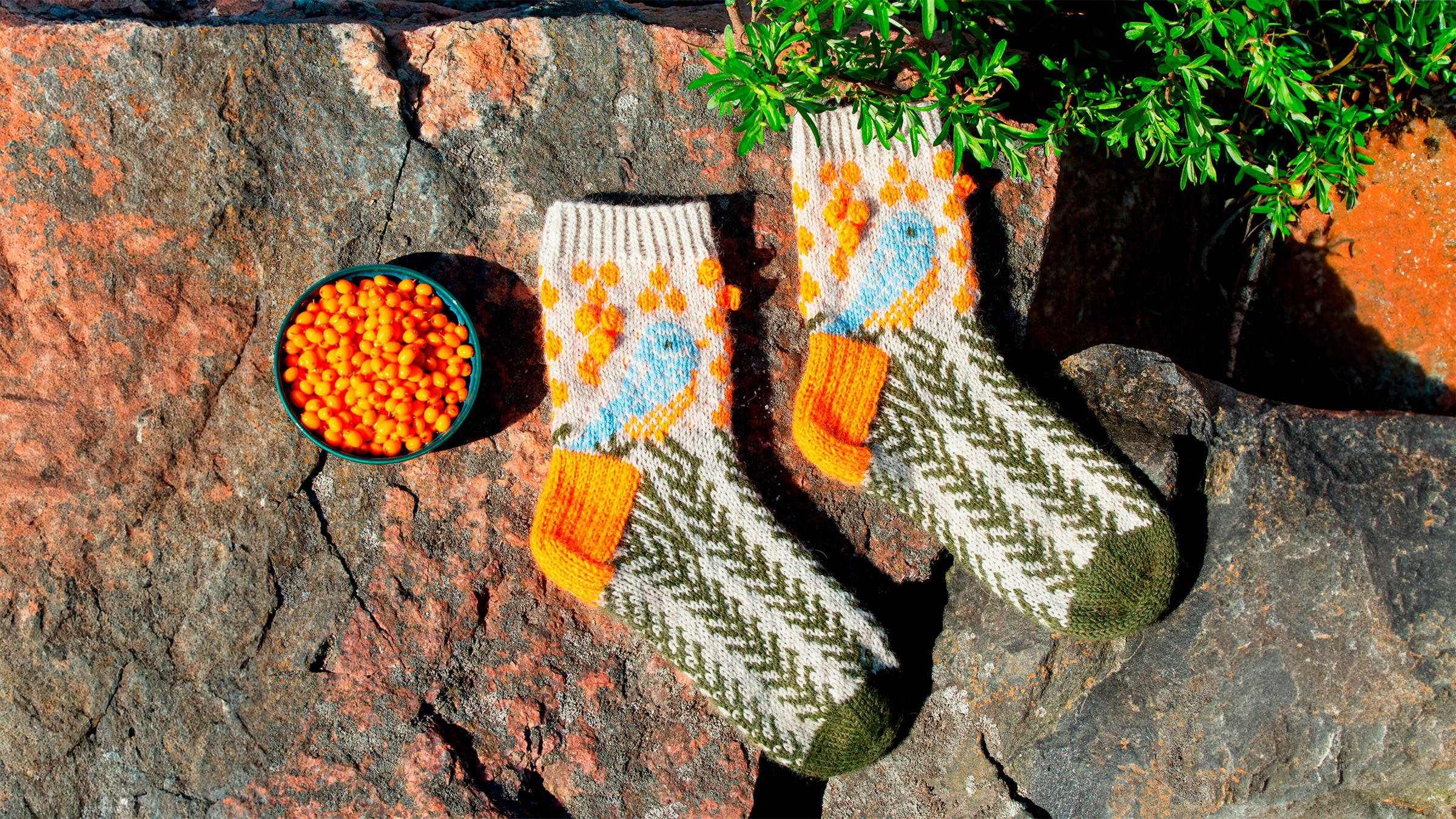 Luo sukkapuikoille värillä pellava 54 (58) s ja jaa s:t puikoille: I puikko = 13 (14) s, II puikko = 14 (15) s, III puikko = 13 (14) s, IV puikko = 14 (15) s. Kerroksen vaihtumiskohta on IV ja I puikon välissä.