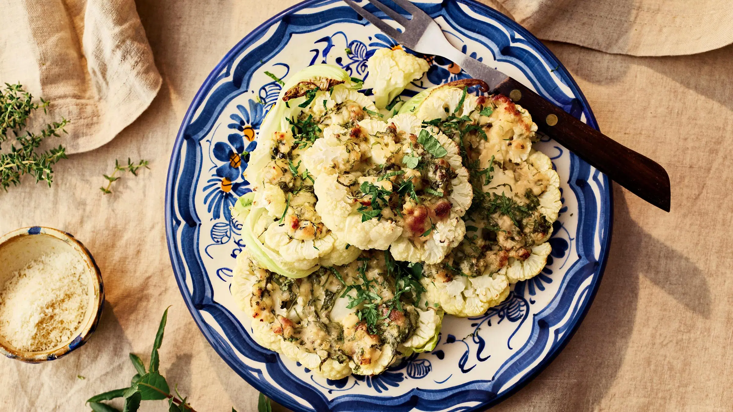 Peel and finely chop the onions. Rinse the vegetables. Cut the cauliflower into florets. Cut the largest florets in half. Dice the stem. Cut the bell pepper in half, remove the seeds and dice. Cut the tomatoes in half.