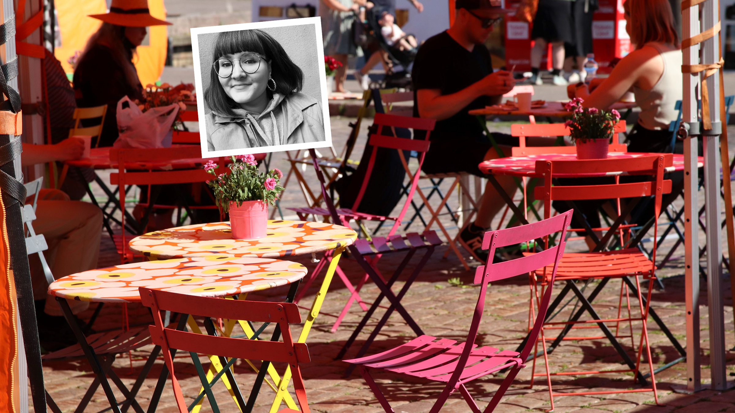 Minulle tärkeä paikka on myös Hakaniemen tori, jossa käyn kesäisin aamukahvilla. Ostan torilta vihanneksia ja kukkia. Myös Hakaniemen halli on minulle rakas. Torista tulevat mieleen lapsuuden kesät, 90-luvun Suomi.