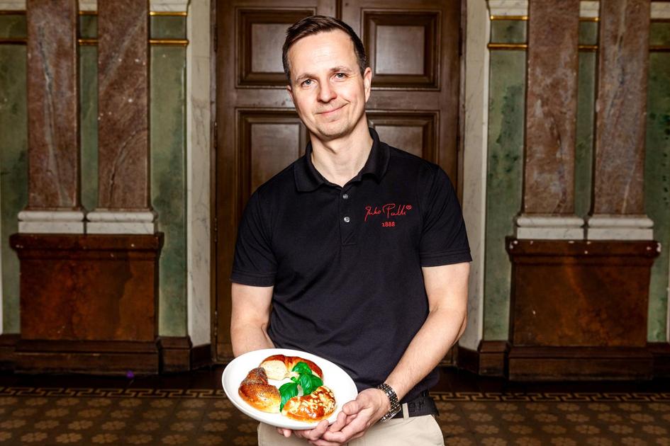 Juho Pullin rinkelileipomon yrittäjä ja leipuri Antti Helkala Lappeenrannasta kisaa Suomalainen menestysresepti -finaalissa Paraskilla, joka on karjalainen versio bagelista.