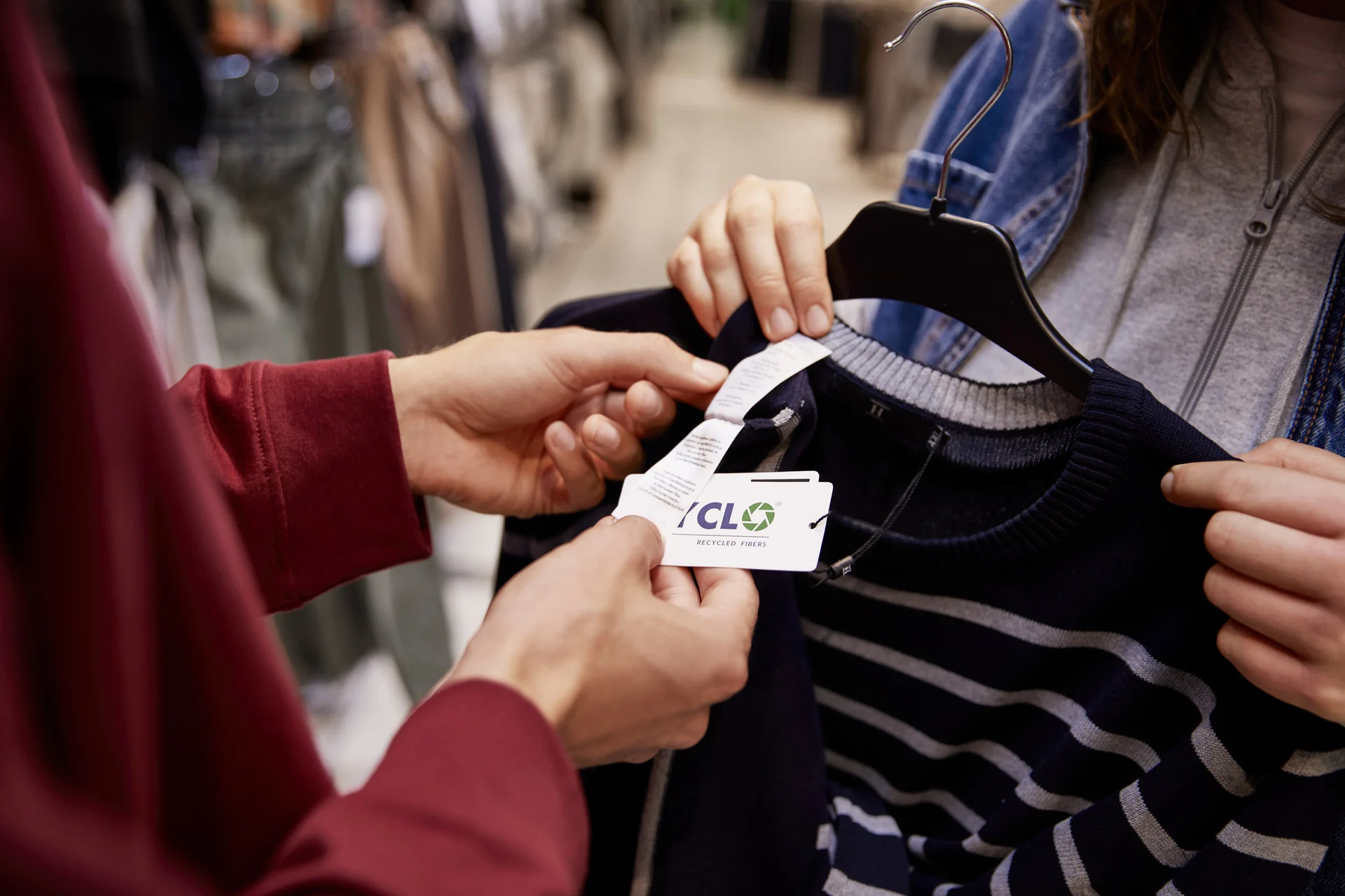 Osasta Prisman omien merkkien vaatteista löytyvä Cyclo-tuotelappu viestii ympäristöystävällisemmästä valmistustavasta. Kierrätyskuidusta tehtyjen vaatteiden tuotannossa ei tarvita vettä tai kemikaaleja.