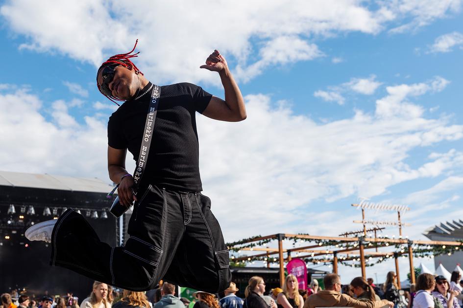 ”En seuraa muotijuttuja. Kokeilemalla olen oppinut, mikä on omasta mielestäni kiva. Mulla oli visio, miten pukeudun koko festariviikonlopun aikana, ja tämä on hyvin sattumanvaraisesti valittu. Huomenna on eri vaatteet. En suunnittele asujani hirveästi etukäteen.