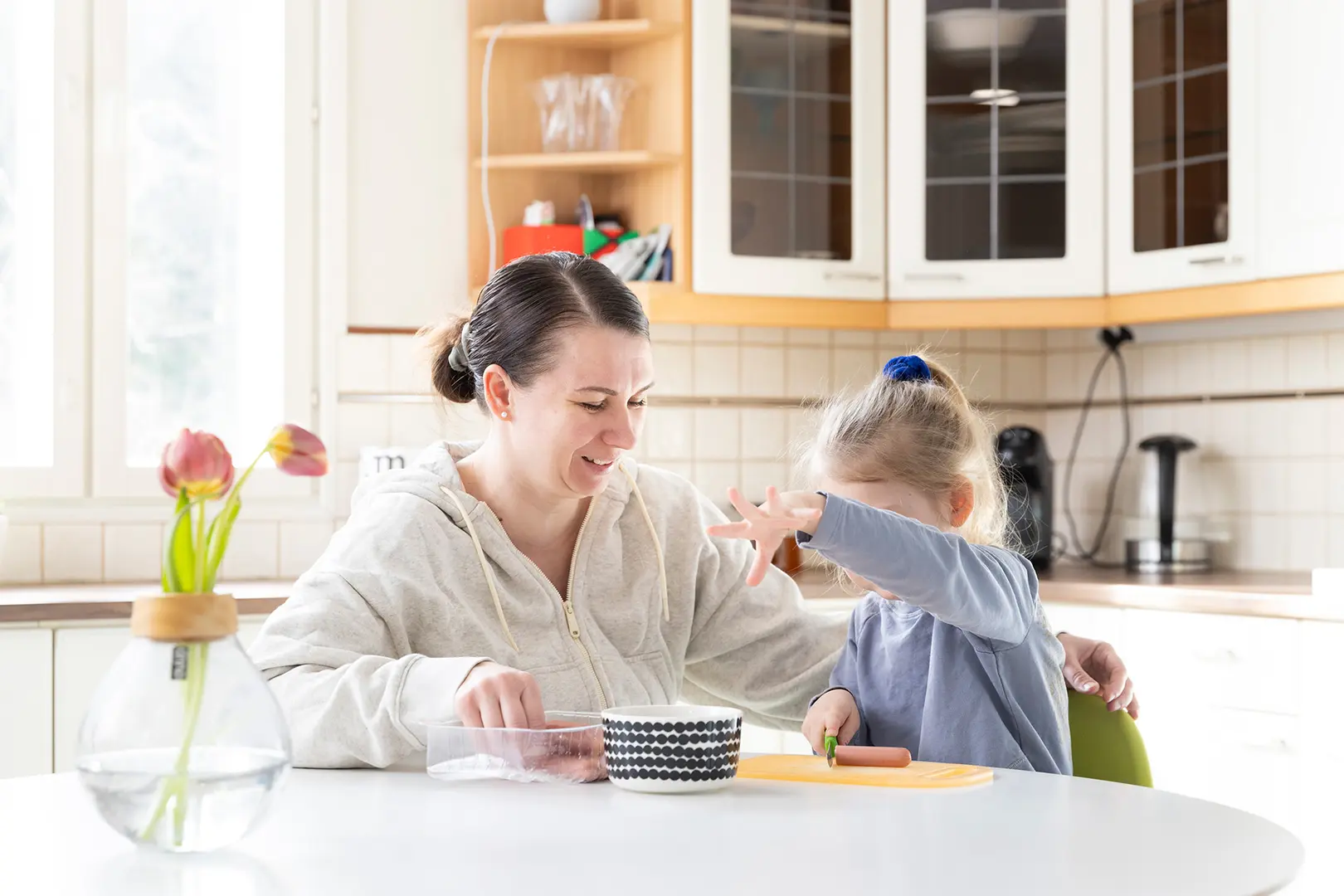 ”Lapset kulkevat meillä näteissä vaatteissa, mutta minulle on tärkeintä, että vaatteet ovat mukavia. Niissä pitää voida liikkua ja leikkiä helposti. Pienemmän kohdalla mietin myös päiväkodin henkilökunnan näkökulmaa ja esimerkiksi sitä, kuinka helppoa on vaihtaa vaippa.”