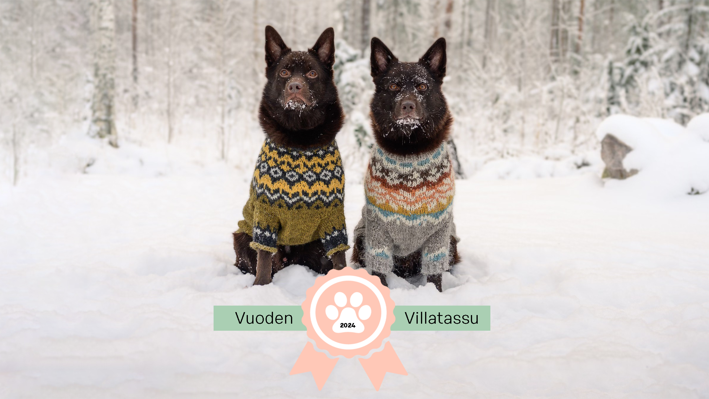 "Kovilla pakkasilla olen laittanut koirille neuleet tuulenpitävän takin alle. Fede tarvitsee lisälämpöä enemmän kuin Rafa. Pojat rakastavat lunta yli kaiken ja kulkevat metsässä mielellään umpihangessa, hännänpää vain vilkkuen. Neuleet ovat tarpeen myös autossa, kun ajamme kotoa Säynätsalosta Lappiin lomalle. Peräkontissa on vetoisaa ja neule antaa sekä lisälämpöä että matkustusmukavuutta."