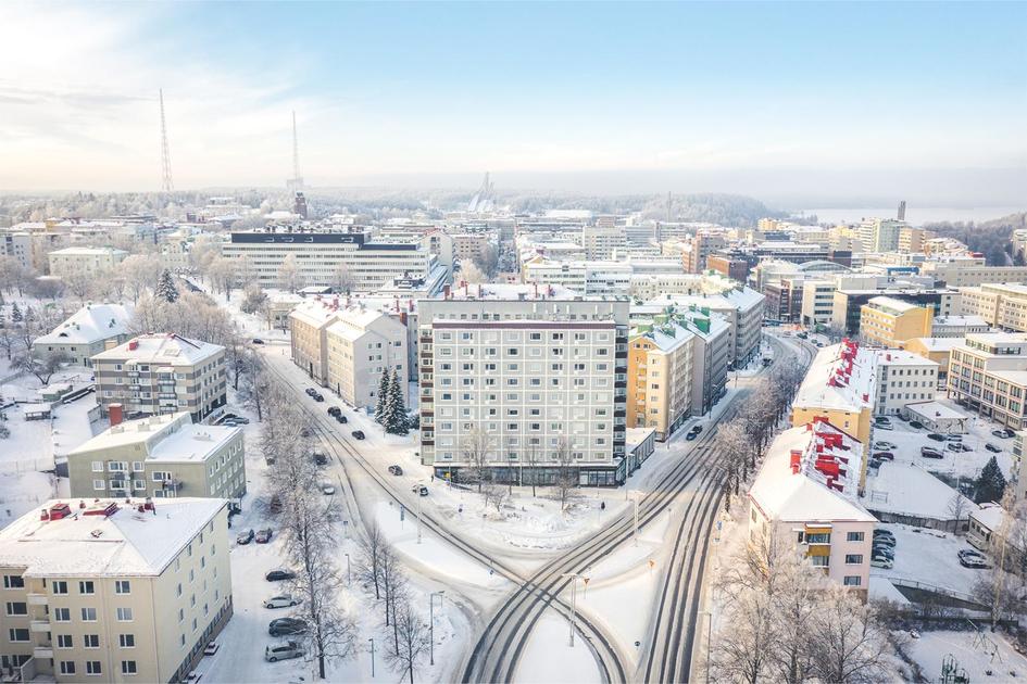 Ei haittaa, vaikka olisi talvi. Sisätiloistakin näkee lähes joka suuntaan lattiasta kattoon ulottuvien ikkunoiden ansiosta. Ja ne maisemat — niitä kuvataan turkulaisella ylpeydellä jutussa uskomattomiksi. Kaupungin näkee ja hahmottaa ihan eri tavalla yläilmoista katsoessa.