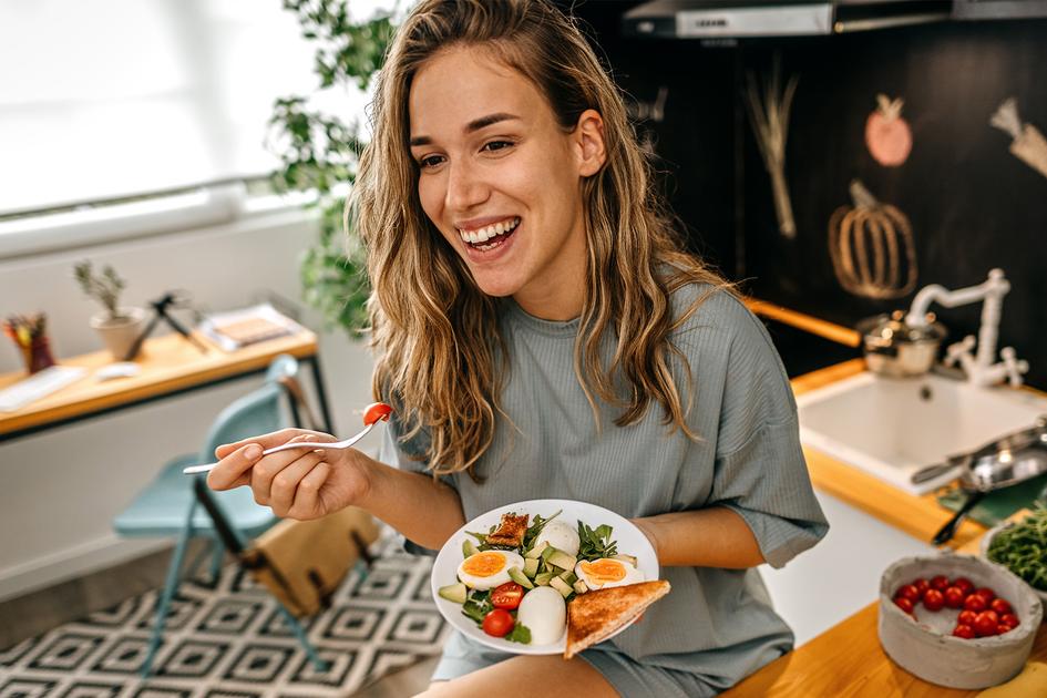 On hyvä syödä lihaa, kalaa, kanaa, kananmunia ja maitotuotteita tai vaihtoehtoisesti monipuolisesti kasviproteiineja.