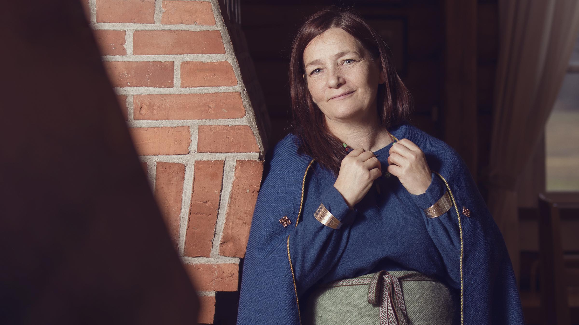 Korujen hankkiminen oli hieno hetki, sillä ne täydentävät villaisen muinaisasun, jonka Pasanen on itse valmistanut arkeologisten kaivausraporttien pohjalta. Hän pukee korut hihojen päälle, kuten hollolalainen emäntäkin aikoinaan teki.