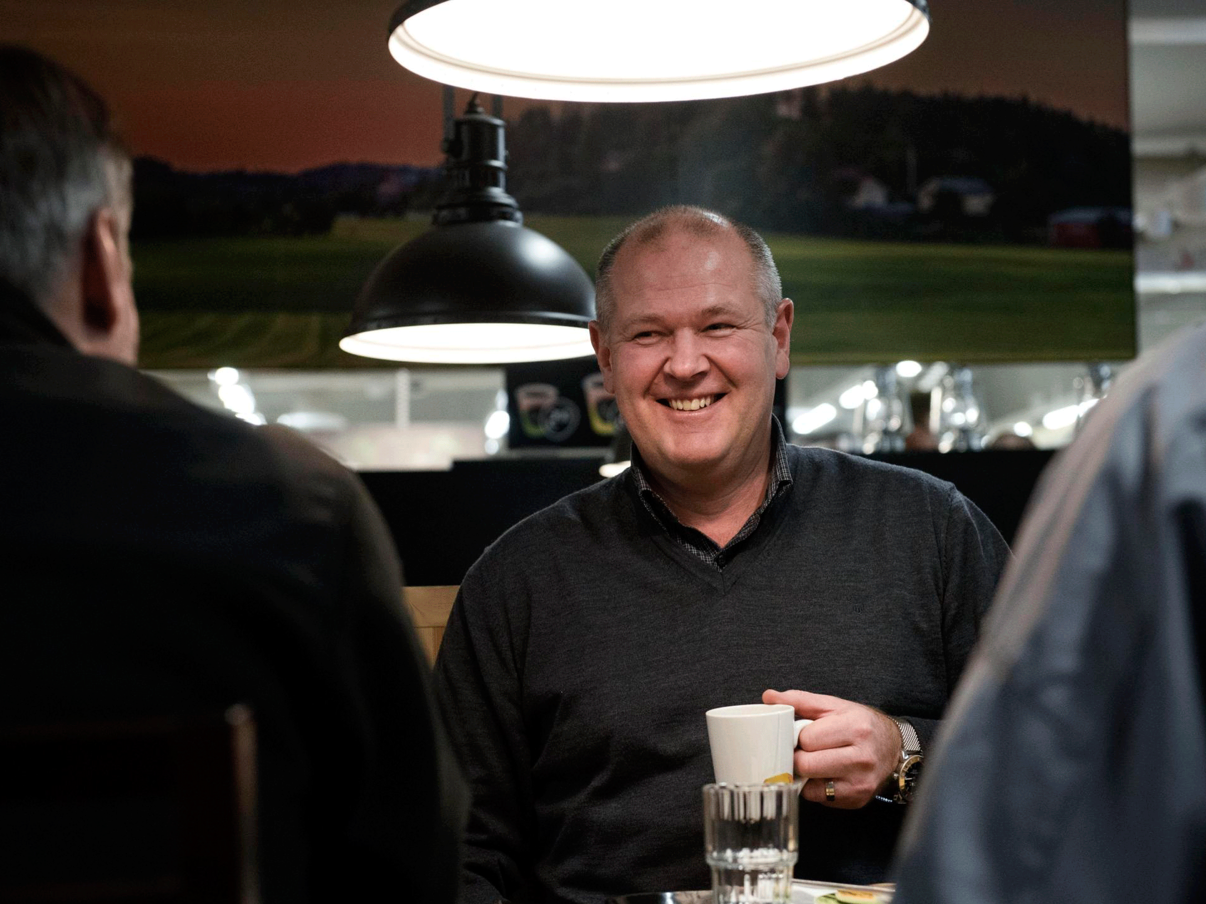 Yrittäjä Anders Nyberg käy lähes joka arkipäivä työkavereiden kanssa lounaalla työpaikan lähellä Pickalan ABC:llä.