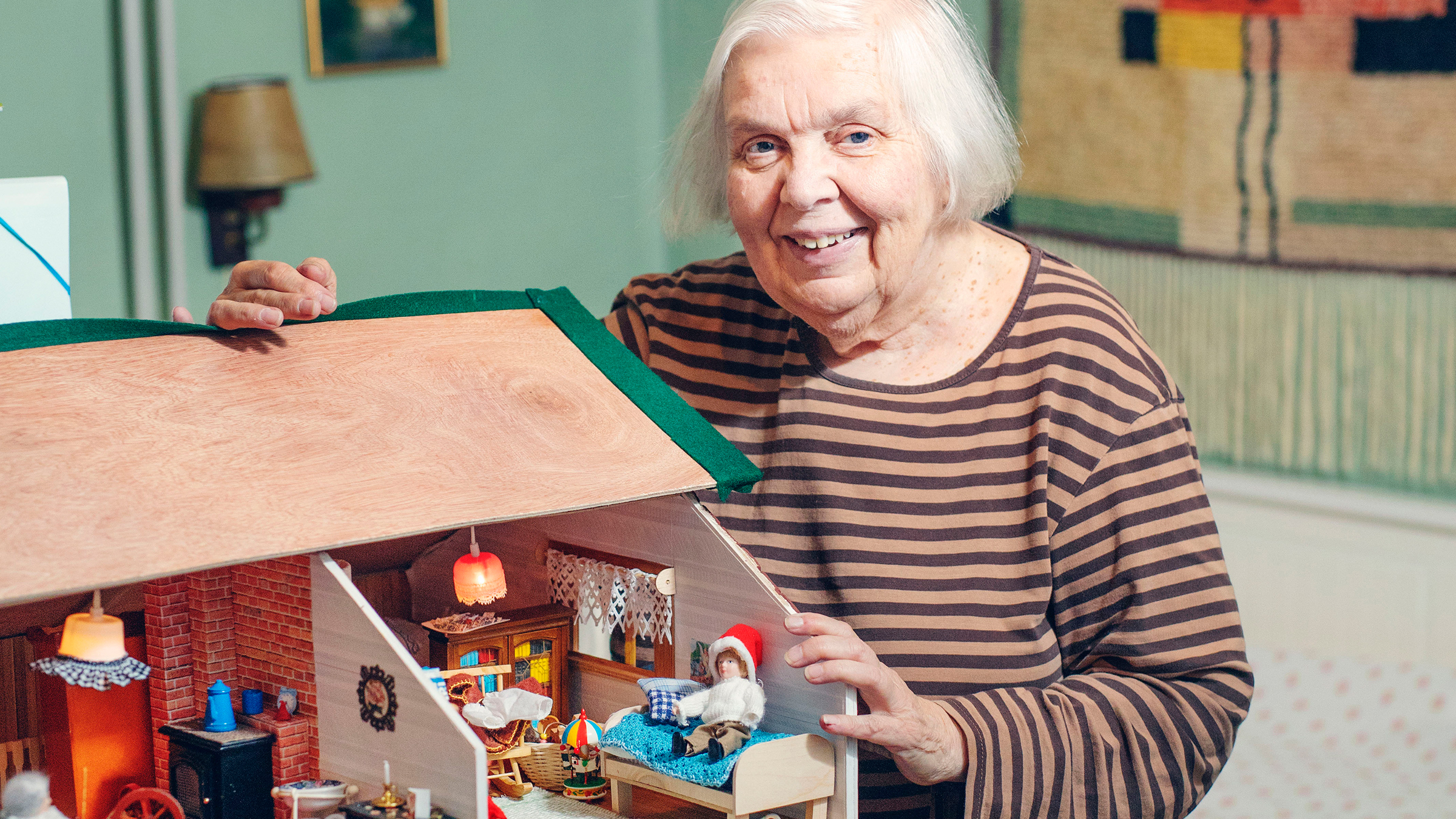 Tämä mummonmökki on siitäkin mainio, että nyt on vihdoin riittävästi tilaa myös Laurikaisen harrastukselle, jonka hän aloitti vuonna 2009 Orimattilaan muutettuaan: hän liittyi Päijät-Hämeen Nukkekotiharrastajiin ja alkoi rakentaa upeita nukketaloja. Niitä on valmistunut jo pitkälti toistakymmentä.