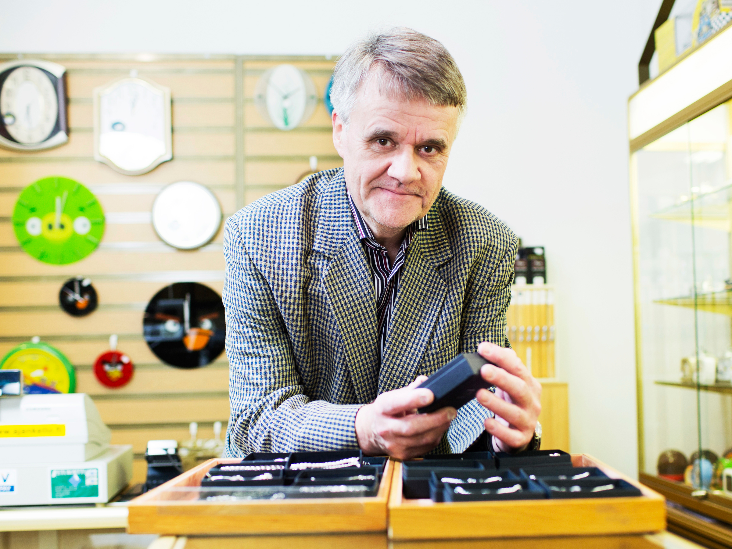 Liikkeemme on toiminut Kouvolassa vuodesta 1945. Tällä hetkellä meillä on kolme kultaseppää, jotka toteuttavat asiakkaiden tilaustöitä. Minä ja veljeni olemme lähellä eläkeikää, mutta kultaseppäpoikani jatkaa todennäköisesti toimintaamme."