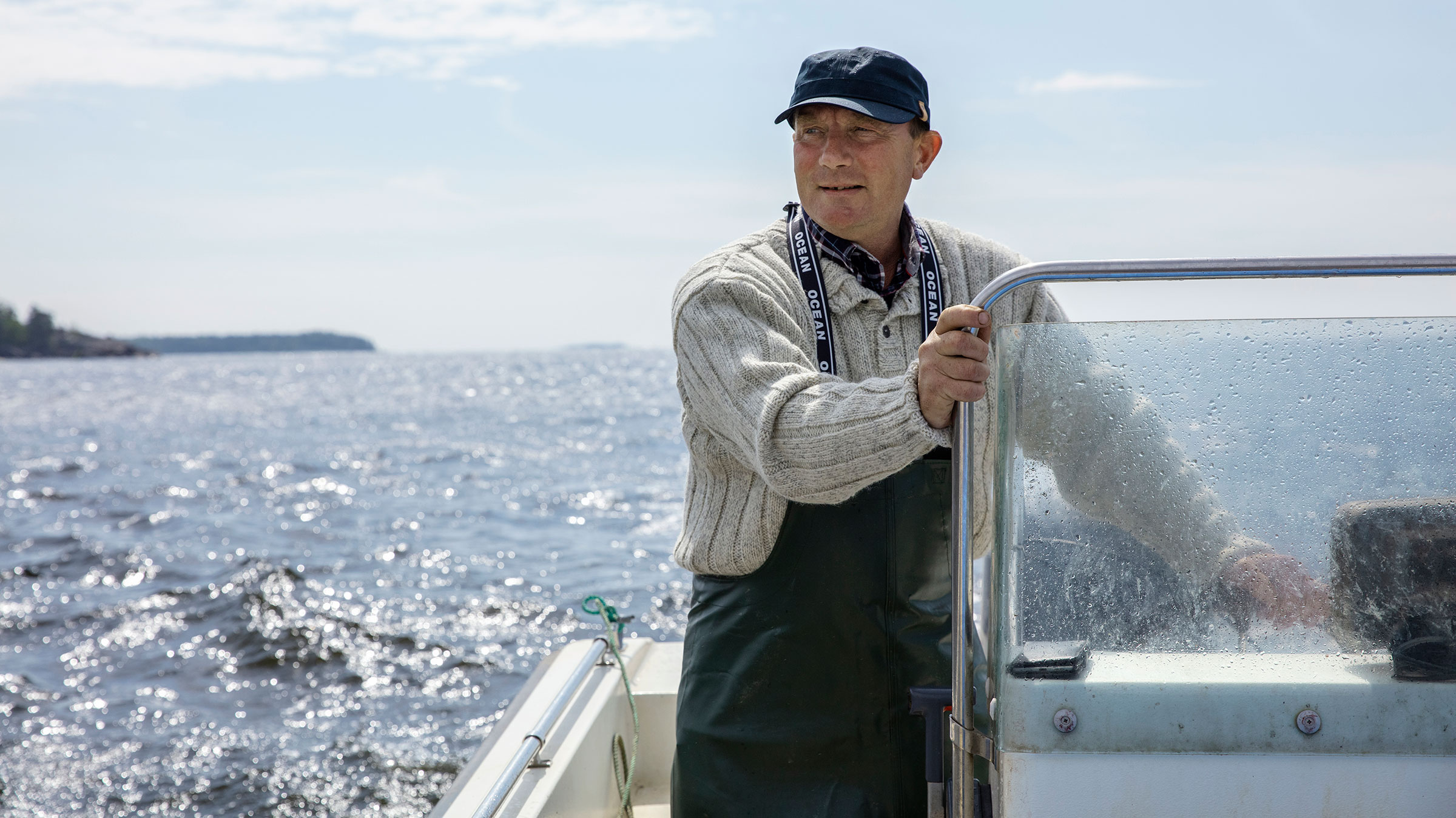 ”Tervetuloa tänne minun konttorille”, Lindholm sanoo ja kannustaa kädenheilautuksella astumaan veneeseensä. Nyt lähdetään katsomaan, onko loviisalaissaarten edustalle asennetuissa rysissä kalaa.
