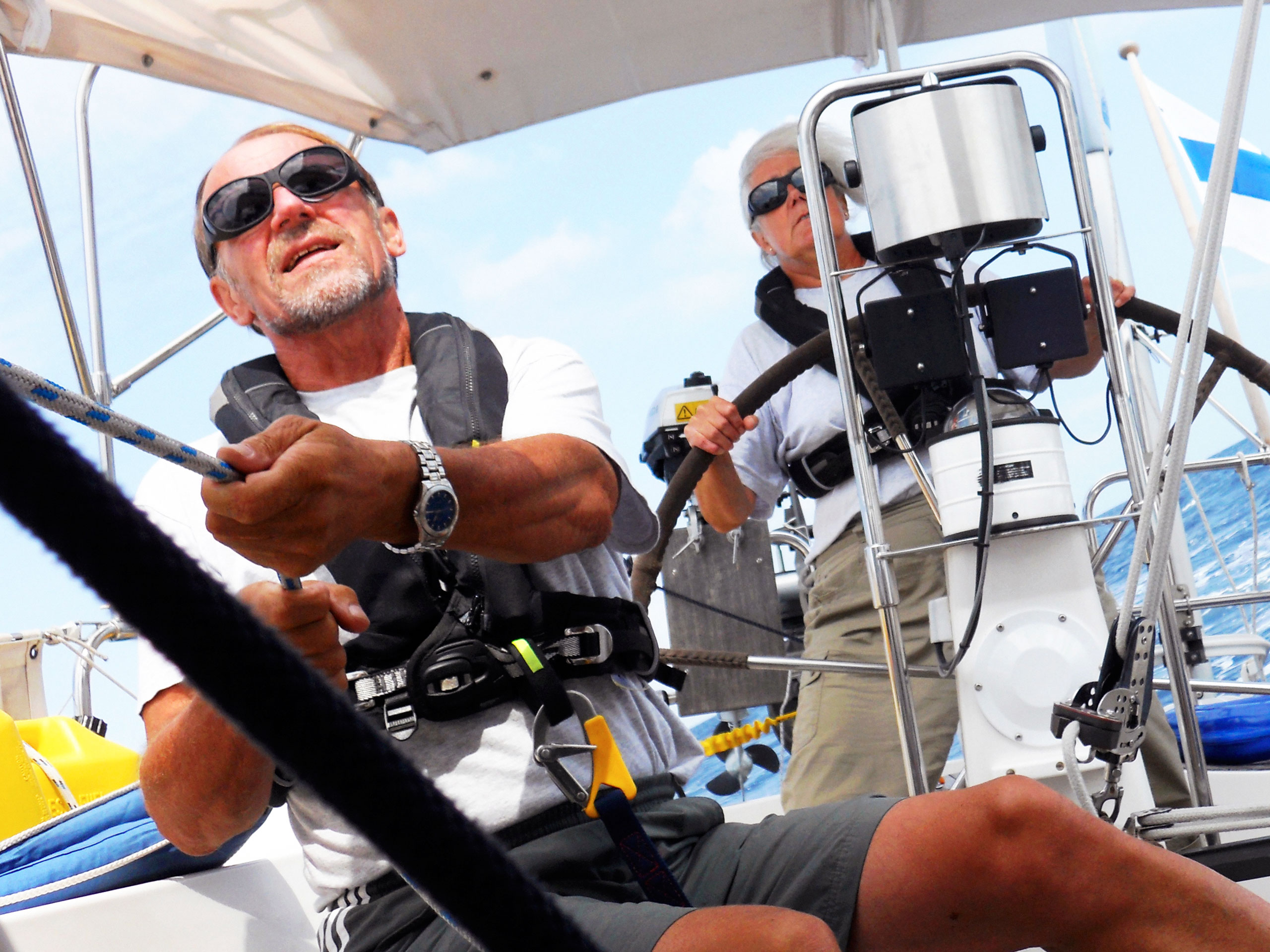 "Purjehduskokemustakin tarvitaan, mutta ei kohtuuttomasti. Vaikka vesi on meille lapsuudesta saakka tuttu elementti, ryhdyimme purjehtimaan vasta 50-vuotiaina. Ennen maailmanympärimatkaa pisimmät tekemämme matkat olivat parin viikon purjehduksia Itämerellä."