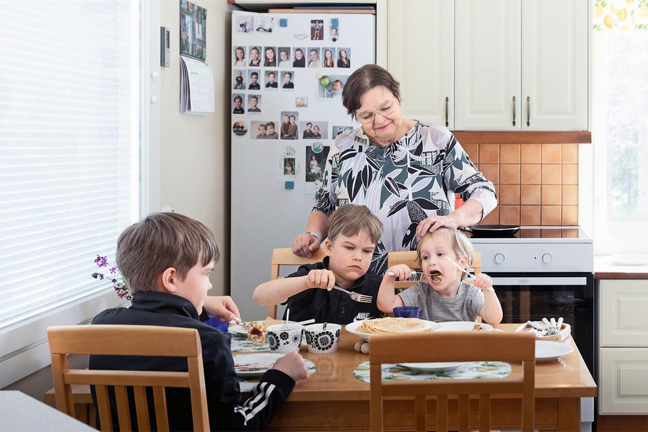Anneli Makkosen lapsenlapset Lenni, 10 (vas.), Eelis, 8, ja Leevi, 3, pääsevät nauttimaan herkuista, jotka on loihdittu Bonuksella hankitulla liedellä.