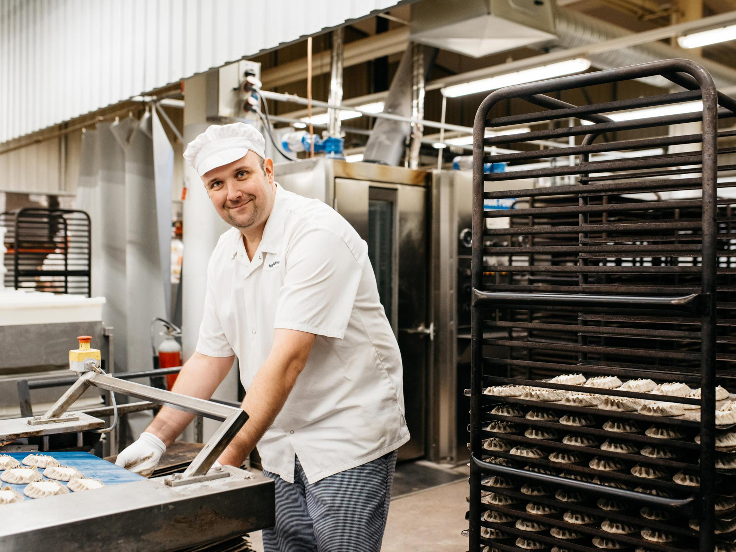 "Pääsin 18-vuotiaana leipomoon töihin. Aluksi tein monenlaisia hommia ja sitten karjalanpiirakoita linjalla, kunnes minusta tuli esimies. Teen edelleen myös piirakoita.