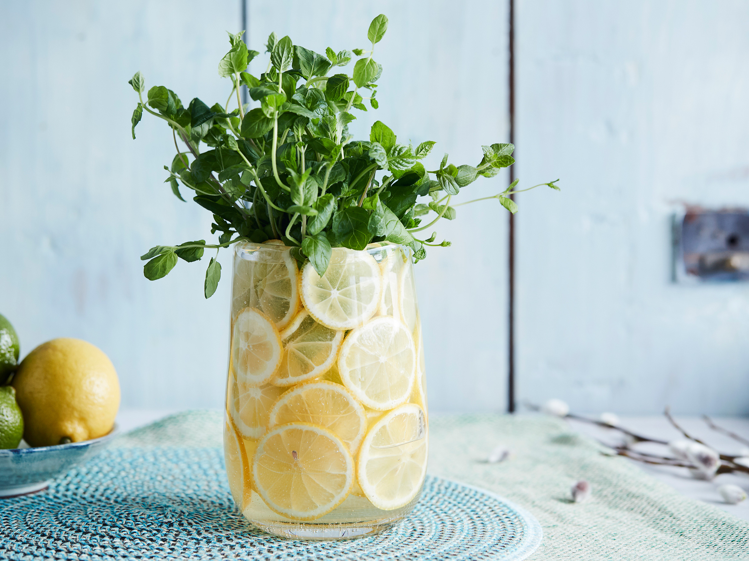 Sitruunamaljakko on näyttävä, mutta helppo koriste kevätpöytään. Maljakon voi täyttää yrteillä. Näin teet sen!