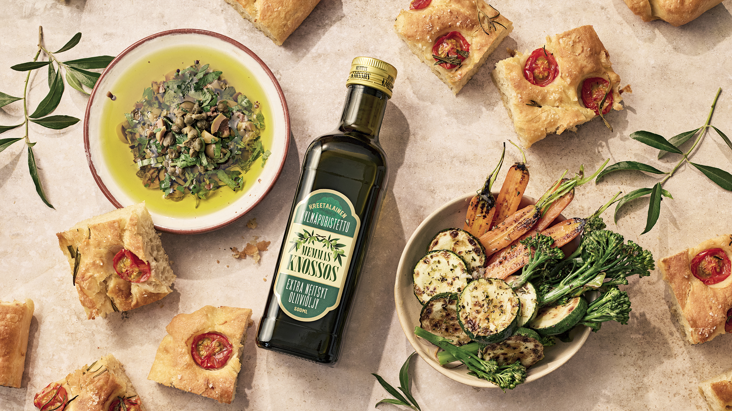 Dippaaminen on trendikästä! Näin saat ravintoloista tuttuun oliiviöljy ja balsamico -komboon lisää makua: sekoita Memmas Knossos extra-neitsytoliiviöljyn ja tumman balsamicon joukkoon hienonnettuja yrttejä, oliiveja ja kapriksia sekä tietysti pieni määrä valkosipulia. Herkullisen vihreä ja voimakkaan makuinen dippiöljy on täydellistä pehmeän focaccian kanssa.