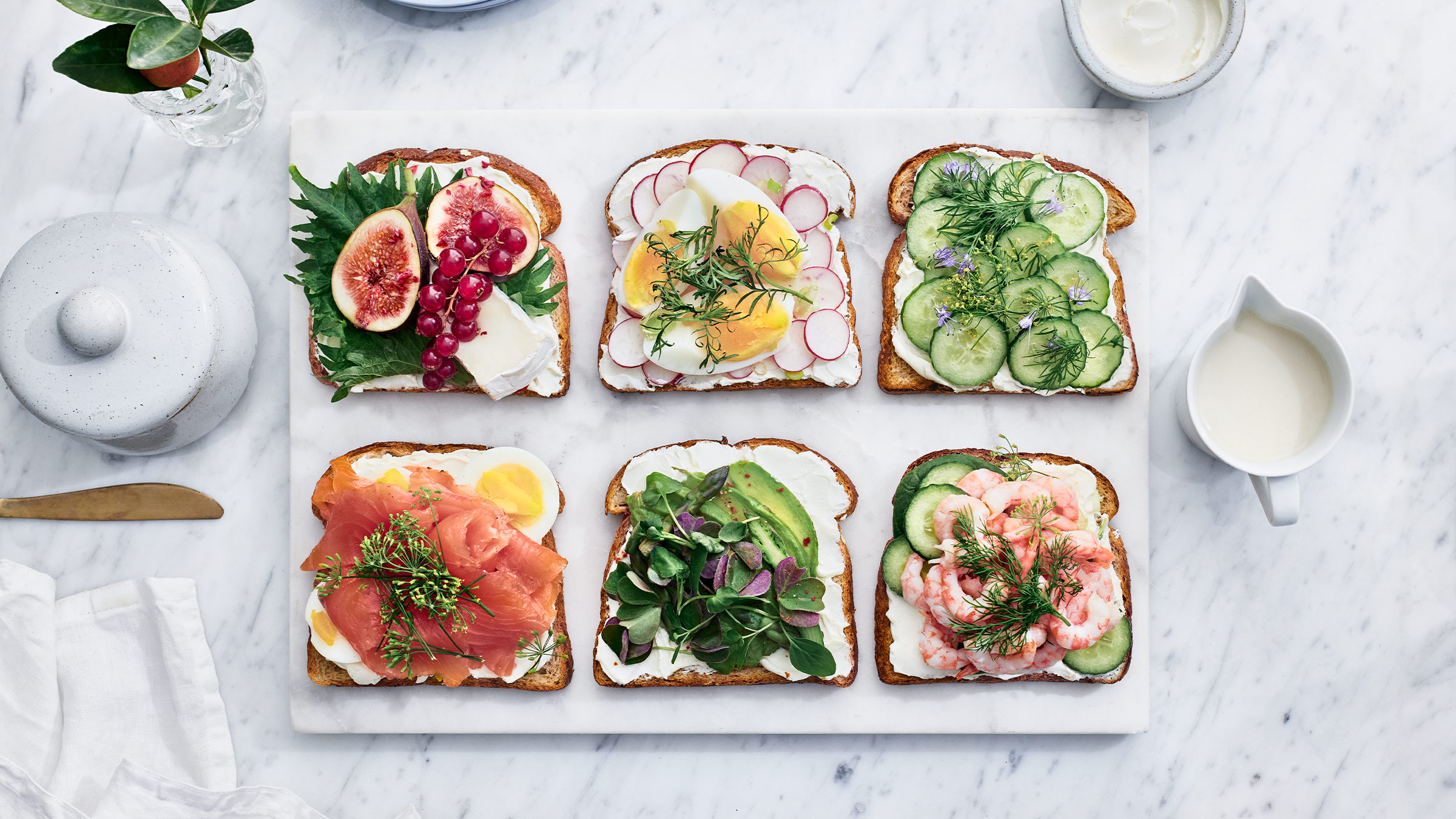Vain mielikuvitus on rajana täytteiden kanssa ja perinteisten kalasäilykkeiden ja -fileiden rinnalla kannattaa kokeilla myös erikoisempiakin makuja sesongin, juhlan teeman ja tietenkin makumieltymysten ja ruokavalion mukaan. Ruokaisampiin leipiin sopii parhaiten rukiinen, hieman tiiviimpi leipä, ja vaaleampi puolestaan toimii pohjana kevyemmille annoksille. Tässä inspiraation lähteeksi muutama helppo suosikkireseptimme, joilla loihdit ruokapöytääsi Nørrebron parhaiden smörrebröd-paikkojen tunnelman.