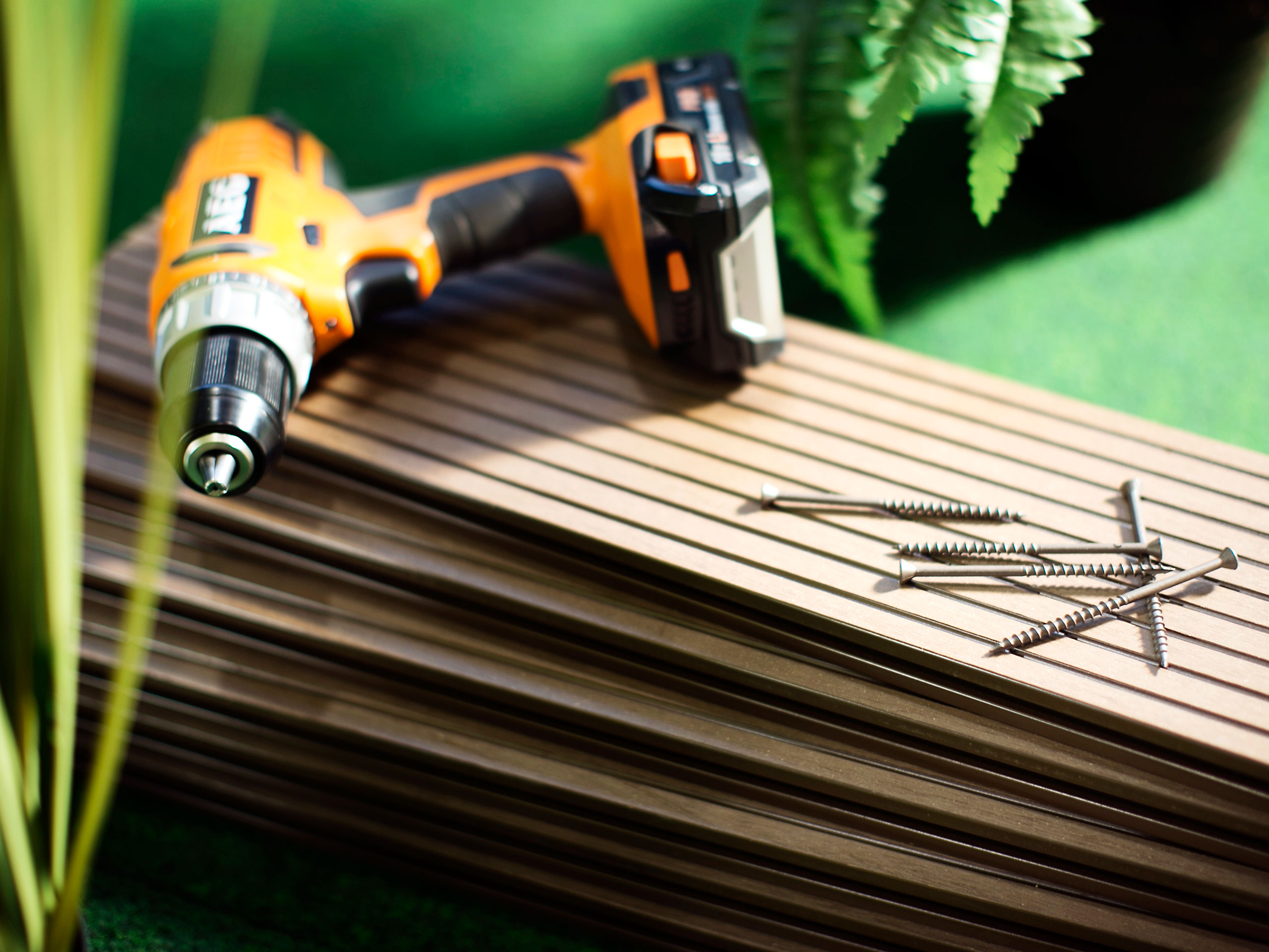 - Rakentaessa ja varastoidessa komposiittilaudat on tuettava hyvin tasaiselle alustalle, jotta ne eivät pääse vääntymään.