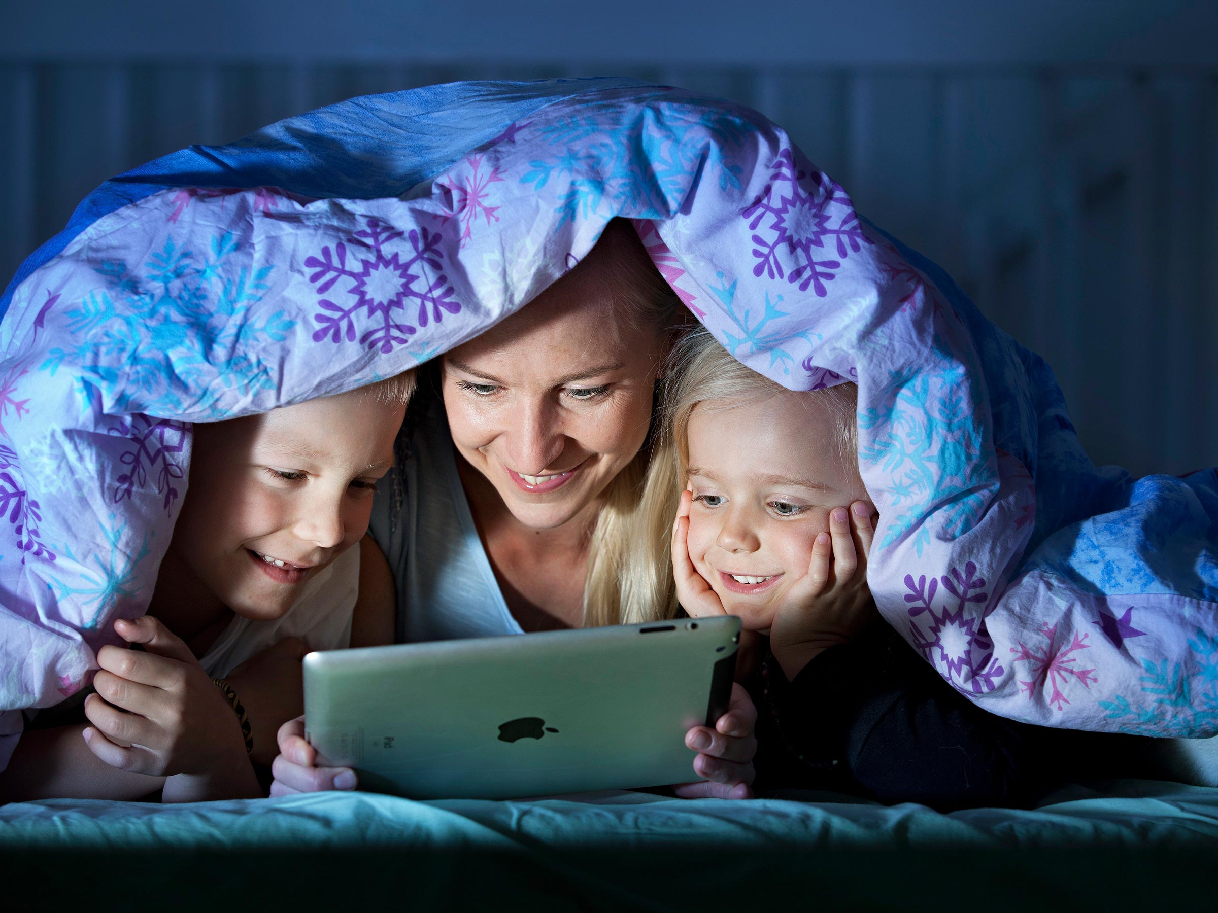 "Illalla avaan tablettini ja istahdan sängylle lapsieni väliin lukemaan satua. Alex, 7, ja Emily, 4, eivät aina pääse kompromissiin valinnoissaan, jolloin molemmat saavat valita yhden iltasadun.