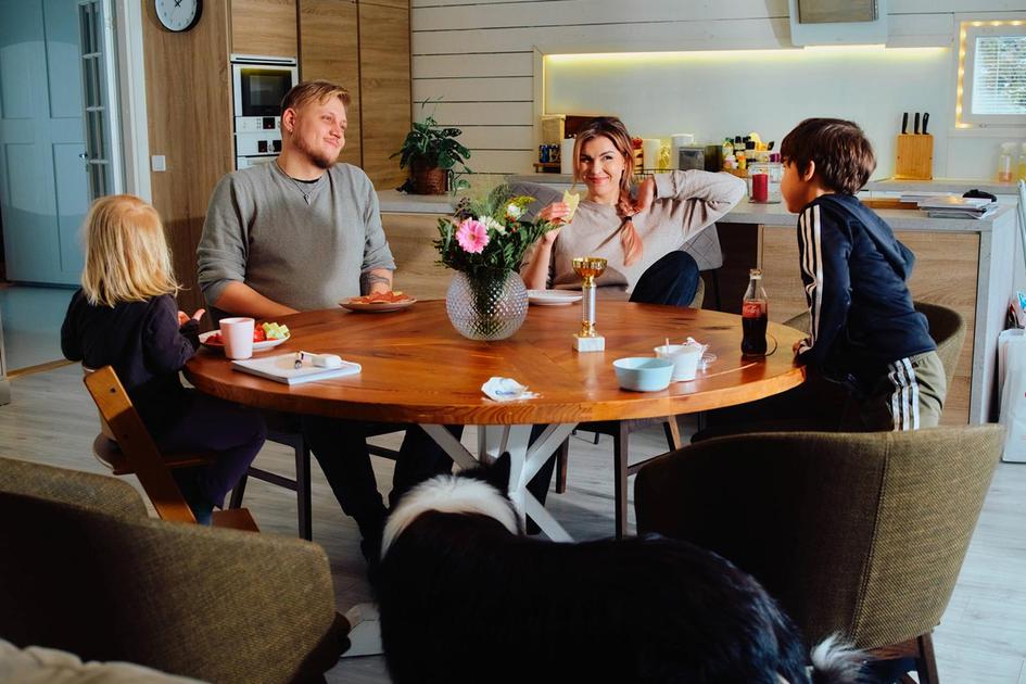 Vuonna 2013 rakennetussa talossa on 260 neliötä. Kodin kuuteen huoneeseen mahtuu vaivatta koko perhe: vanhemmat ja 3-, 8- ja 10-vuotiaat lapset.