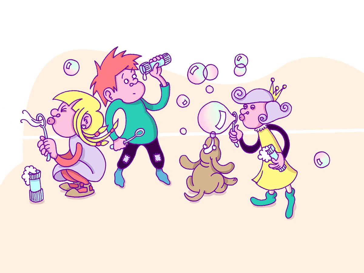 - Saippuakuplien puhaltaminen on lapsista yllättävän kivaa. Valmiit saippuakuplapullot ovat pienimpien kanssa käteviä, ja purkista saa myös kivan muiston kotiin. Kotitekoisen saippuakuplaliuoksen voi sekoittaa vedestä, tiskiaineesta ja ripauksesta sokeria. Kuplan kestävyyttä voi halutessaan lisätä apteekista saatavalla glyserolilla. Puhallustikut voi ostaa valmiina tai vääntää rautalangasta.