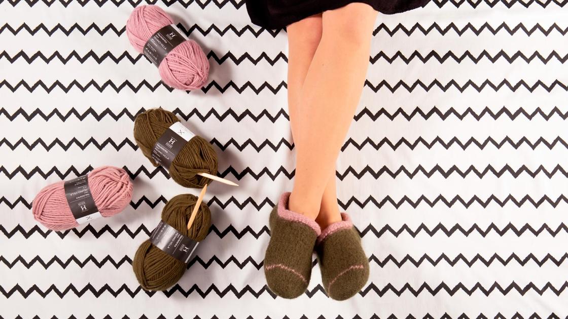 Neulo villalangasta suuret, matalavartiset sukat ja huovuta ne pesukoneessa lämmittäviksi huopatossuiksi.