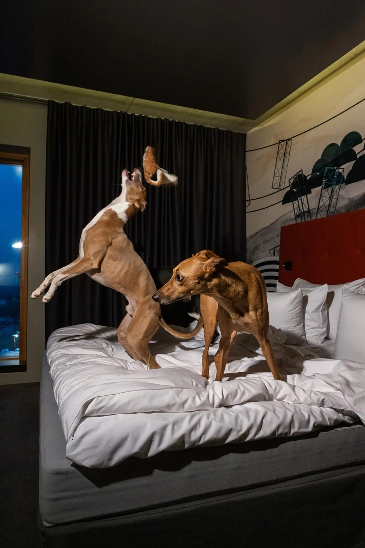 Nyt on hillitön porukka! Katso mitä tapahtui, kun kolme whippetiä pääsi hotelliin