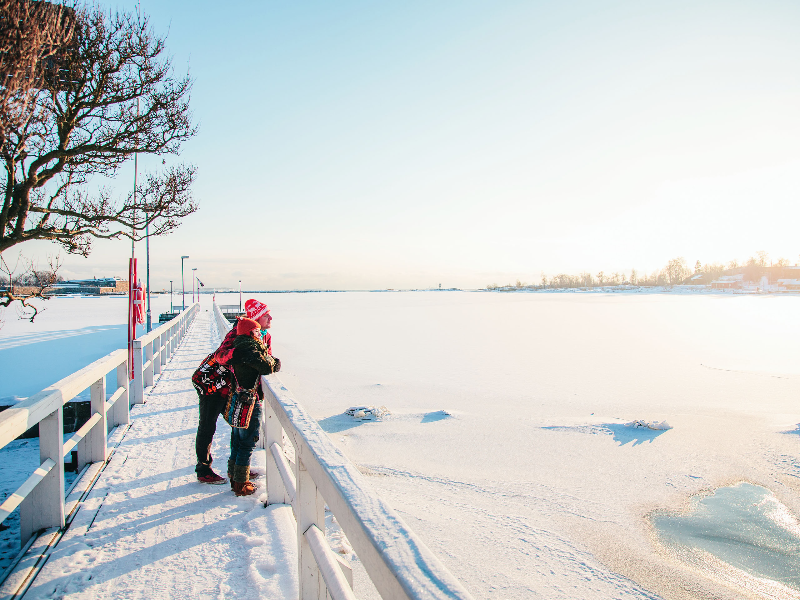 Sään salliessa Kaivopuiston rannasta voi kävellä jäätä pitkin aina Harakkaan ja Sirpalesaareen asti. Uunisaareen ja viereiseen Liuskaluotoon pääsee talvisin siltaa pitkin. Lauttamatkan päässä Kauppatorilta on Suomenlinna, joka on upea ilmestys myös talvella.
