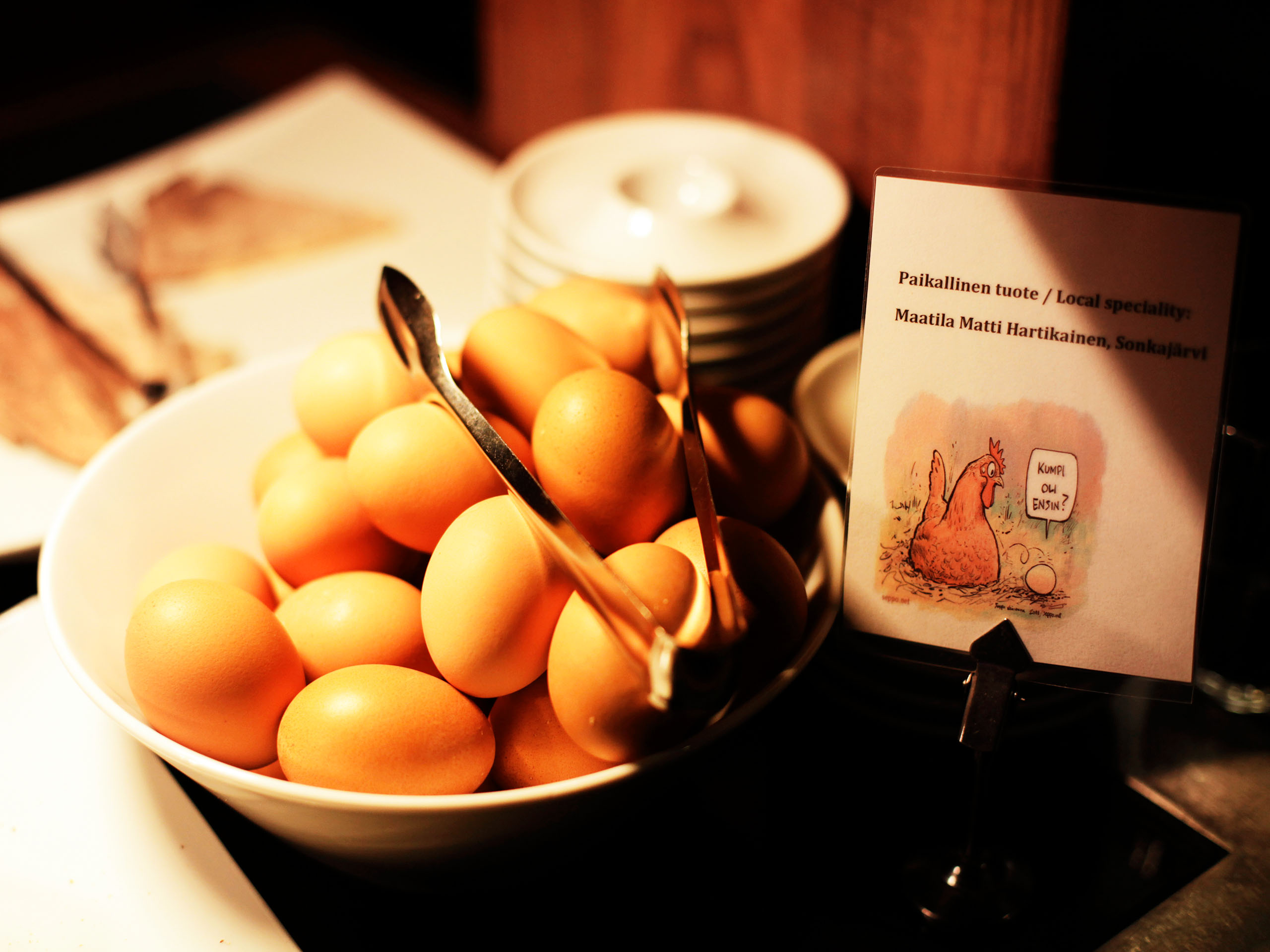 Asiakkaat erottavat paikallistuotteet erityisistä infolapuista. Nurmela lupaa, että Sokos Hotellien aamiaisvalikoimaa kehitetään jatkuvasti.