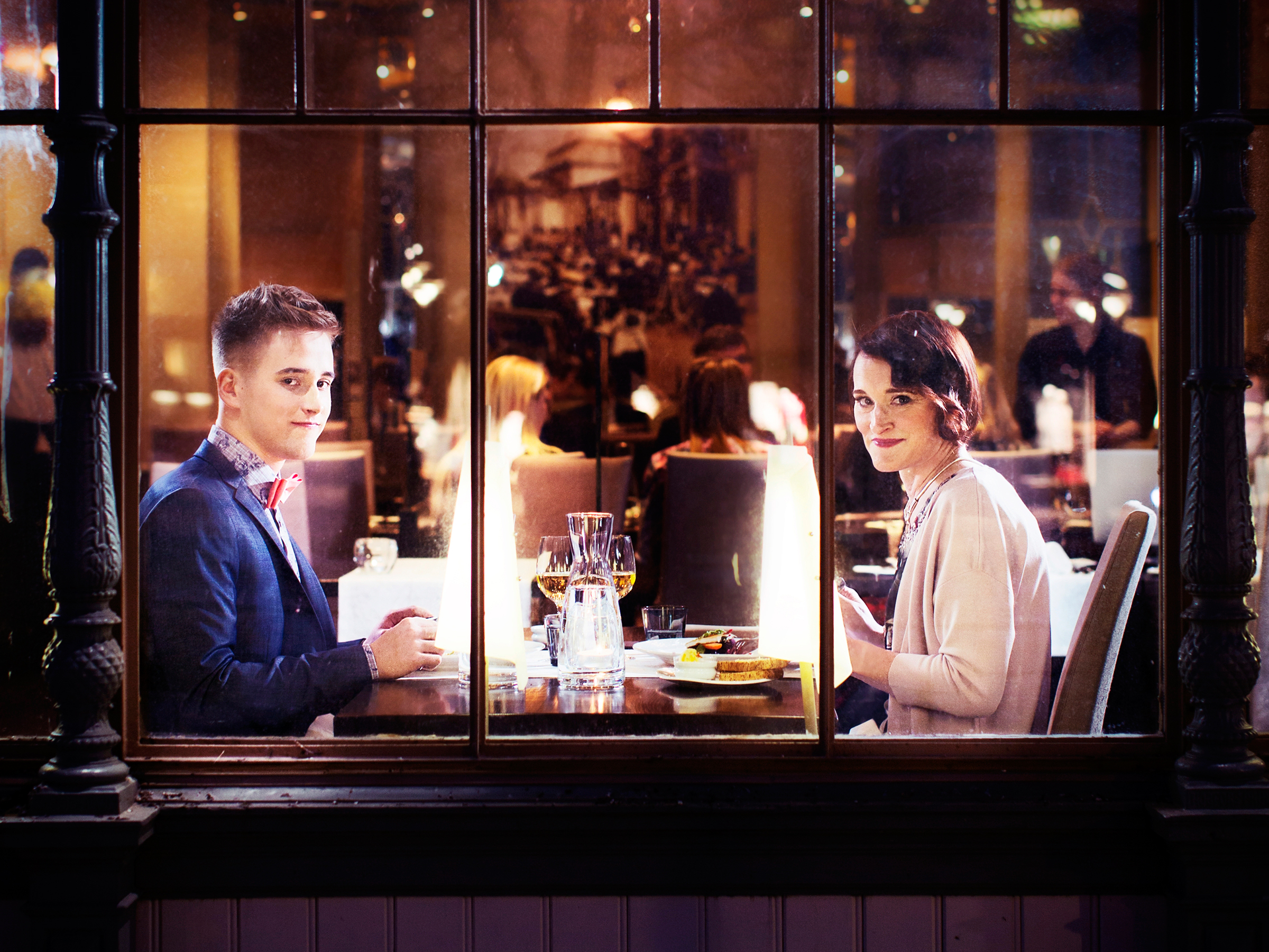 Tänään ilta tummuu kuitenkin Helsingissä. Äiti ja poika ovat viettäneet päivän Yhteishyvän muuttumisleikissä. Nyt on aika nauttia uudesta tyylistä ja heille loihditusta illallisesta. Ehkäpä tässä kattokruunujen alla ja lempeän jazzin soidessa taustalla on ripaus suurkaupungin sykettä?