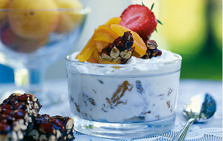 Siivilöi aprikoosit ja ota neste talteen. Silppua aprikoosit ja lisää ricottavaahtoon.