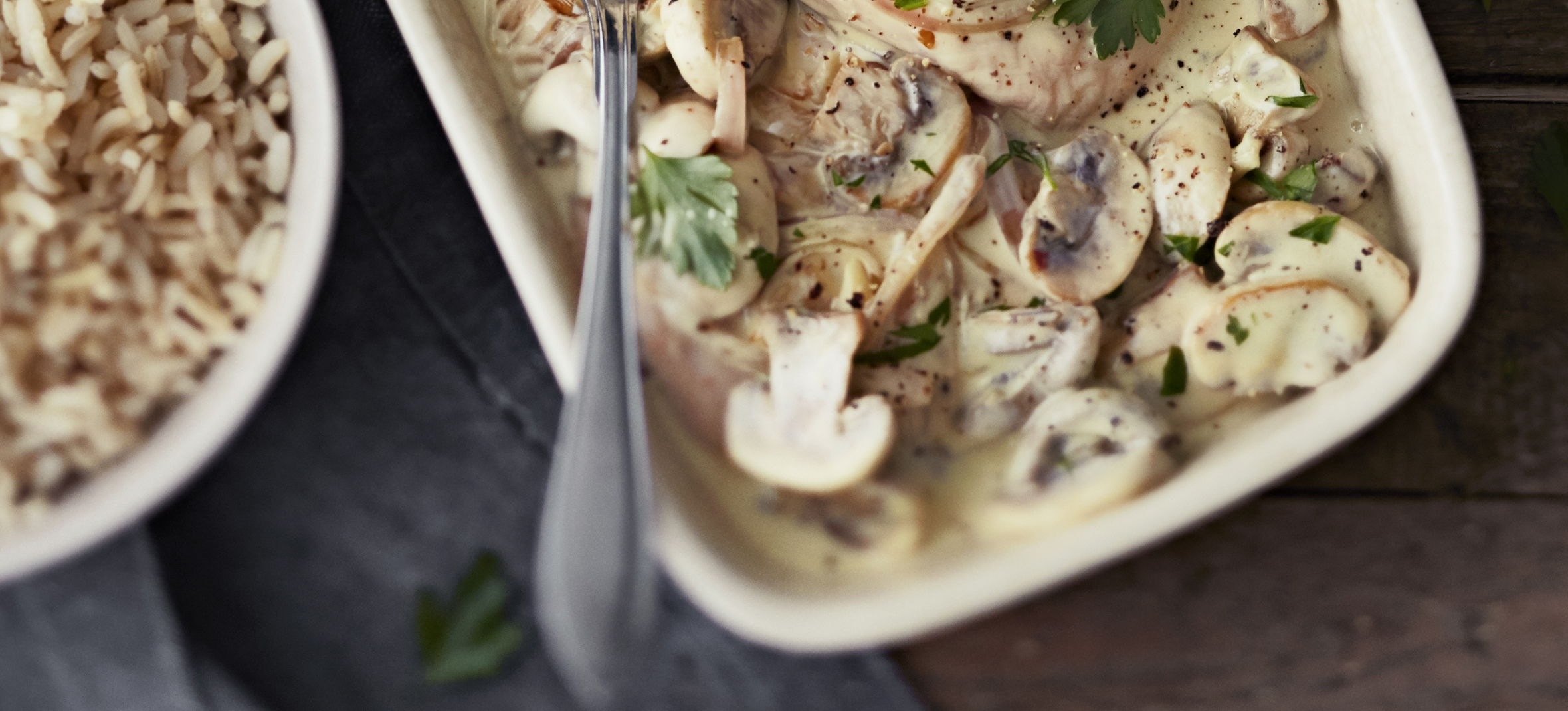 Lisää herkkusienet ja paista, kunnes sienien vesi on haihtunut. Kaada ruokakerma pannulle ja mausta kastike Dijon-sinapilla, suolalla ja pippurilla. Anna hautua hetken.