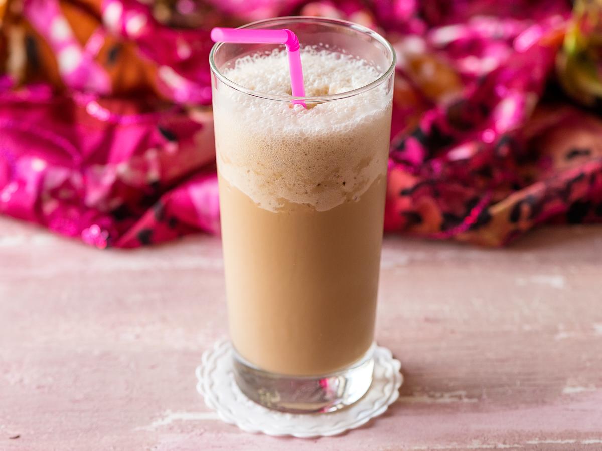Mittaa ainekset kulhoon tai tehosekoittimeen ja pyöräytä kuohkeaksi juomaksi. Kaada korkeaan lasiin ja nauti pillillä.