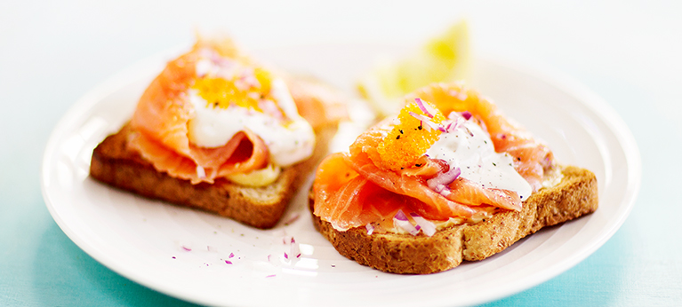 Paahda leipä ja sivele pintaan voita. Aseta leivälle ilmavasti graavilohta. Lusikoi mätikastiketta päälle ja ripottele sipulia koristeeksi. Rouhi mustapippuria pintaan.