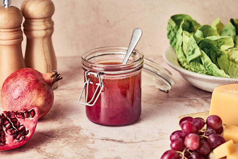 Hedelmäinen granaattiomenavinegretti maistuu erityisesti joulusalaateissa. Aromikas Memmas Knossos extra-neitsytoliiviöljy tasapainottaa makeutta.