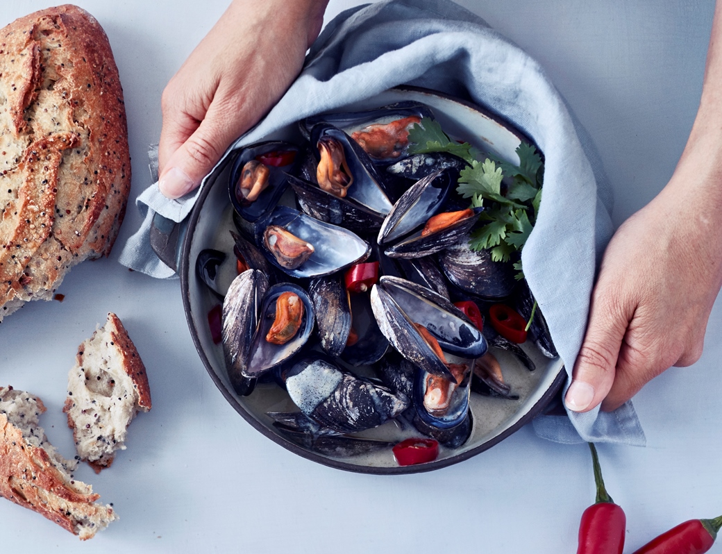 Kun simpukat ovat avautuneet, ruoka on valmista.