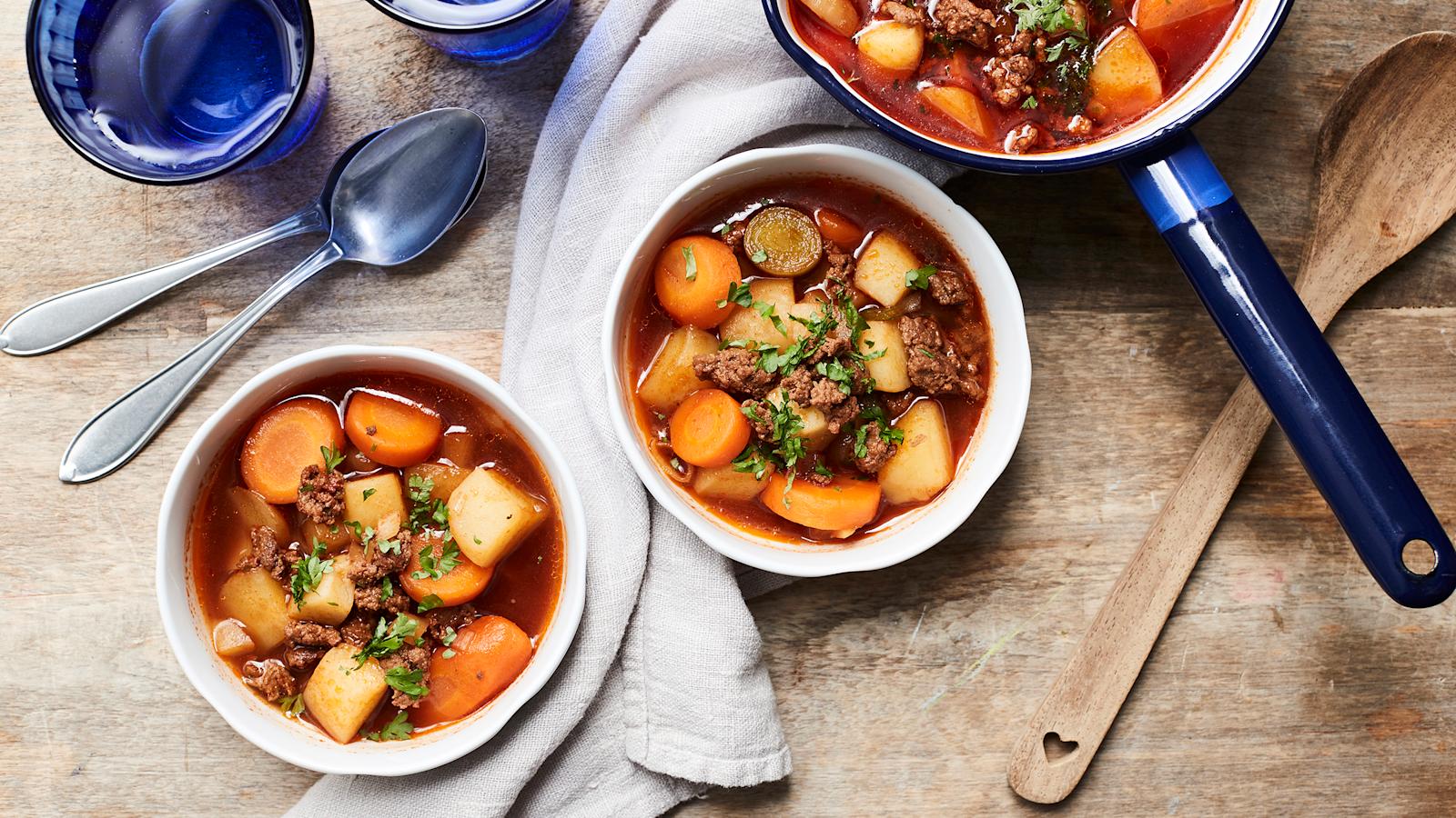 Maukas jauhelihakeitto valmistuu helposti muutamasta aineksesta. Käytä keittoon pakastejuureksia, niin perinteinen arkiruoka on pöydässä puolessa tunnissa.