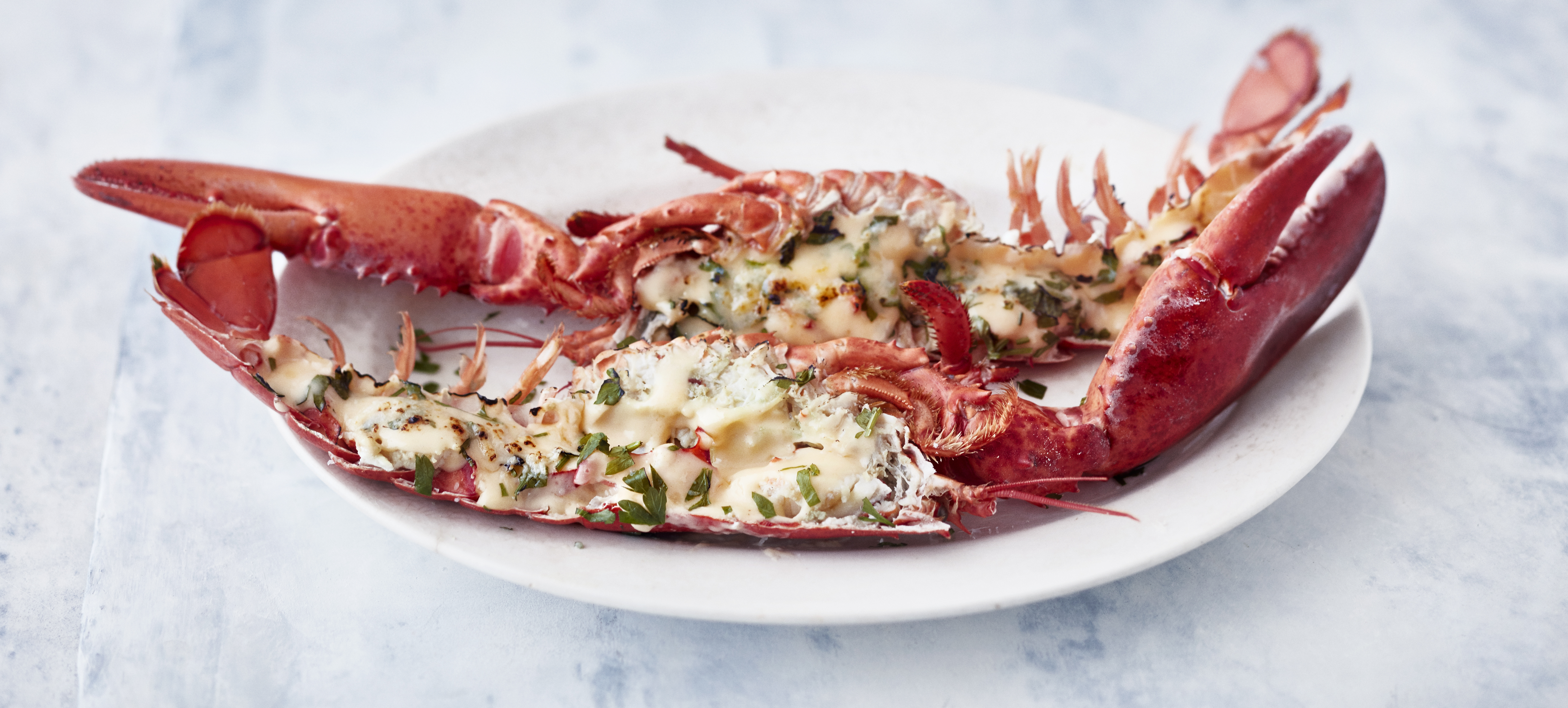 Lusikoi seos hummerinkuoriin. Ripottele päälle loput juustoraasteesta. Gratinoi uunin ylätasolla noin 5 minuuttia tai kunnes kastike saa hieman väriä.