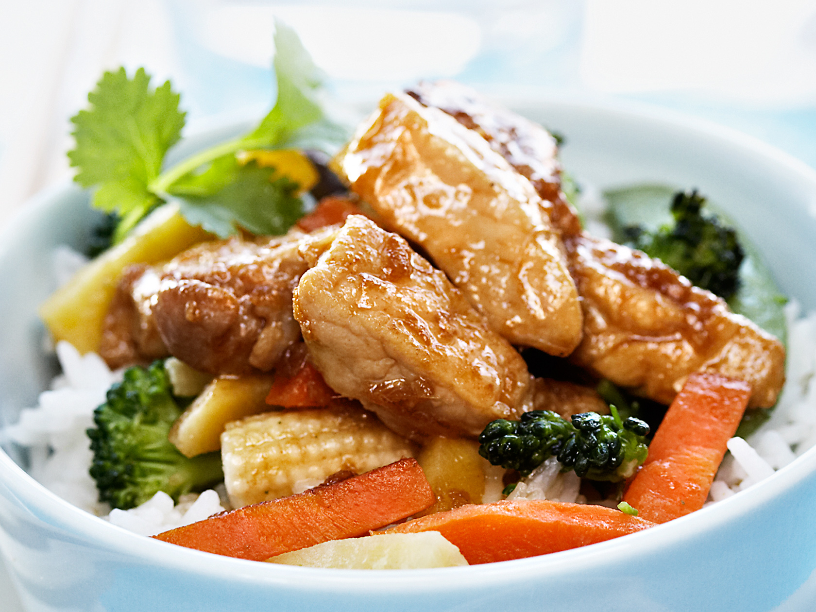 Pyyhi ja suikaloi filee. Laita kuumennettuun pannuun öljyä ja lisää inkivääri, hienonnettu valkosipuli ja cayennenpippuri. Lisää hetken päästä lihasuikaleet. Paista liha kypsäksi ja lisää kasvikset. Kääntele seosta pari minuuttia ja kaada sekaan soija. Tarjoile riisin kera.