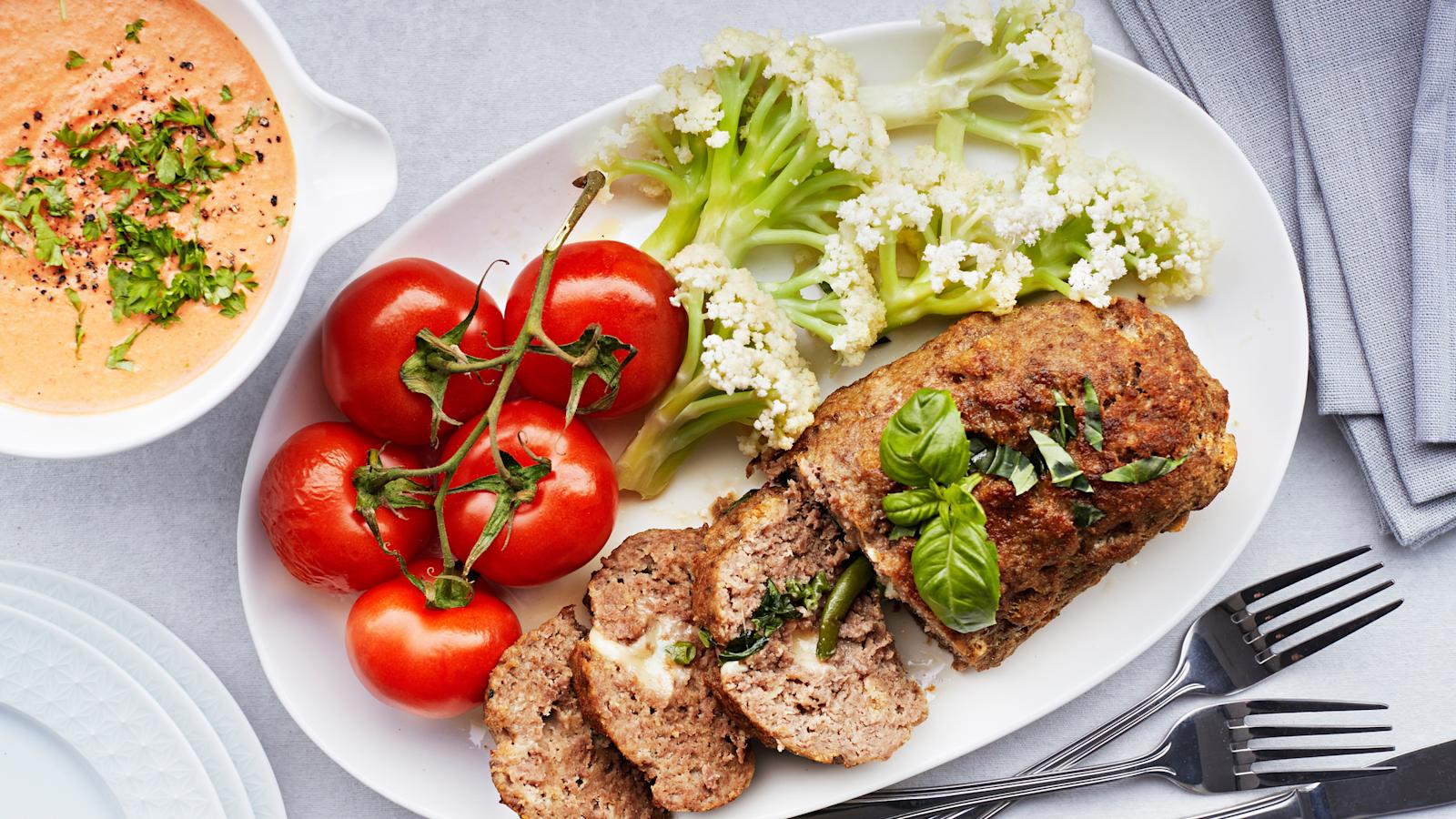 Tämän jauhelihamurekkeen juju on juustoisessa täytteessä ja murekkeen kanssa tarjottavassa kermaisessa tomaattikastikkeessa.