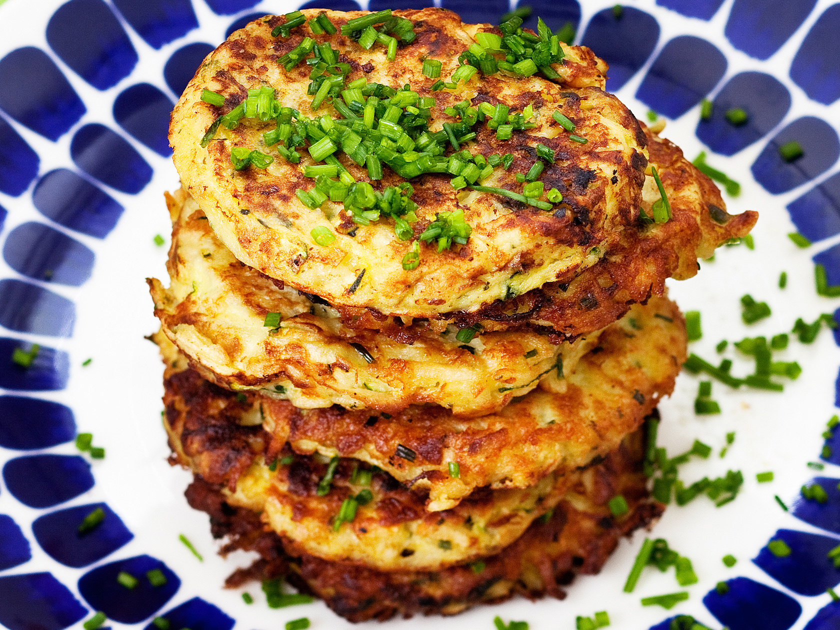 Kuori palsternakka, perunat ja sipuli. Huuhtele kesäkurpitsa. Raasta kasvikset karkeaksi. Siirrä ne kulhoon. Lisää kananmunat, juustoraaste, jauhot, suola, pippuri ja ruohosipuli. Sekoita tasaiseksi ja anna vetäytyä hetken aikaa.Kuumenna öljy pannussa. Paista juureskakkuja keskilämmöllä 3–4 minuuttia molemmilta puolilta tai kunnes ne saavat kullanruskean värin ja ovat kypsiä. Tarjoa salaatin kanssa tai lihan tai kalan lisäkkeenä.
